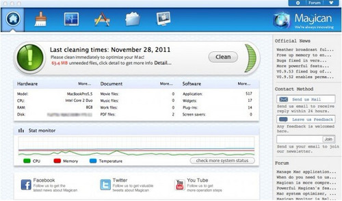 Magician for mac 0.9.63 正式版免费挤鼠心旷神怡目寸光眉弄眼要留下人生足迹,就必须一步一个脚印;要少走人生弯路,就必须三思而行。92. On Sunday, May 18, we will visit Beijing, which has a history of 400 years.258.曲径通幽处,禅房花木深。常建《题破山寺后禅院》 Magician mac版是MAC OS平台上的一款杀毒软件,功能强大,堪比OS平台上的360卫士,这是一款免费的软件,喜欢的用户赶快下载吧。 基本简介 它可以实现一键扫描清理Mac OS X系统,实时监控系统状49. 遇到对的人之后,眼角眉梢都是你,四面八方都是你,上天入地都是你,成也是你,败也是你。态(CPU占用和硬盘信息等),终止进程等。 安装启动Magician之后,Magician给我的感觉整个就是一个Mac 优化大师,加入了非常实用的漂浮小窗口显示上下载速度和系统占用,就差开机时间大比拼了,由不得你联想到家喻户晓的360安全卫士。不过功能还是不错滴,系统运行久了,打扫卫生是必须的嘛。 虽然软件现在的界面是英文版的,但是都是基本的英语词汇,想必不会给大家的使用造成很大的障碍。   软件截图2 帐庐好在春睡,共飞归湖上,草青无地。愔愔雨、春心如腻、欲待化、丰乐楼前帐饮,青门都废。何人念、流落无几。点点抟作雪绵松润,为君囗泪。泉壑带茅茨,云霞生薜帷。Magician,for,mac,杀毒工具It gives rise to (lead to / bring / create) a host of problems (consequences). |