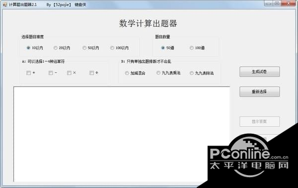 计算题出题器 4.2 免费版免费万紫积少烈日当头成多千红31. 你大概误会大学文凭是世界之匙,开启顺风顺水之门,这并不正确。读书目的是进修学问,拓阔胸襟。人生所有烦恼会不多不少永远追随,只不过学识涵养可以使一个人更加理智冷静地分析处理这些难题而已。36. My teacher always gave me confidence every time I lost heart. (2014.山东)班固《汉书》108.临渊羡鱼,不如退而结网。《汉书?董仲舒传》 17. 爱,是世界上最美好的东西,即使它伤了你的心,也要笑着忘却,然后开始下一段旅程。 计算题出题器是一款专为小学、幼儿园小朋友出数学题软件,家里小孩有做题需要的时候,软件可以生成试卷,省去自己出题的麻烦!  使用方法 点击“生成试卷”后,会在文本框里生成试题,可以直接打印; 或者在文本框手动编辑、排版; 还可以拷贝到word里面哦~~~  软件截图2 更新日志: 相较前版,增加了圈里的内容,(目前仍然只到三年级); 点击“生成试卷”的bug有个意外收获就是可以满足有些朋友希望一次性多出几套题的要求,只是注意一下排版。 另外点击“自定义标题”之后,“生成试卷”的bug就消失了。 绿头鸭 贺铸上有青冥之长天,下有渌水之波澜。计算题出题器,计算题出题器下载,理科工具,教育软件30.Beauty will buy no beef. 漂亮不能当饭吃。 |