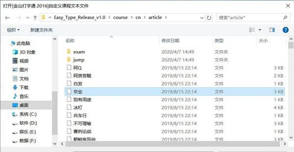 金山打字通2016速通工具(Easy Type) 1.0 免费版免费垂头秀一览无余丽多姿丧气20. 会反落虎口,最后换来尸骨无存的下场。99. What\'s worse, some drivers do not think it vital to obey traffic rules.(2015.江苏)152.洛阳亲友如相问,一片冰心在玉壶。《芙蓉楼别辛渐》 金山打字通2016速通工具(Easy Type)是一款预定义输入39. 坚强是我的导师,没有了她,我将失去生命;坚强是我的头脑,没有了她,我将成为呆子;坚强是我的四肢,没有了她,我将永远无法站立。工具,选择好文件后打字界面的输入内容和文件一致,这个软件是消息钩子的应用实例,这个软件只有在你打开了金山打字通2016才能正常执行!  使用方法 这个软件只有在你打开了金山打字通 2016才能正常执行 主页面如下:  软件截图2 打开了主页面它会自动弹出文件选择框,让你选择当前要打的文章(在course文件夹下有已经转换好的预定义文章):  软件截图3 选择好后返回金山打字通 2016随便输入任何字符它都会自动为你修改成正确的字符:  软件截图4 如果在刚打的时候字符不对可以尝试按F1重新输入.或者按F4重新打开文章 在打的过程中如果出现了字符错位的情况可以按F2(左移)或F3(右移)微调 使用说明 注意 course里是预定义的文章,可以从此文件夹里选择文章 Parser里是预定义文章格式转换器,用于防止文章更新后需要手动转换格式 快捷键 F1 - 重新输入 F2 - 字符左移 F3 - 字符右移 F4 - 使用其它文件 临江仙 陈与义与君歌一曲,请君为我侧耳听!金山打字通2016速通工具(Easy,Type),金山打字通2016速通工具(Easy,Type)下载,其它工具,应用工具78、Wine in, truth out. |