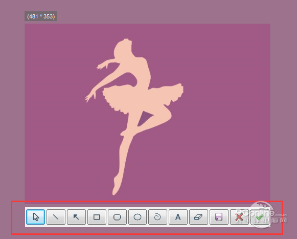 3、下方的工具栏提供多个功能,可以根据自己的需要进行保存、添加箭头、添加文本等操作