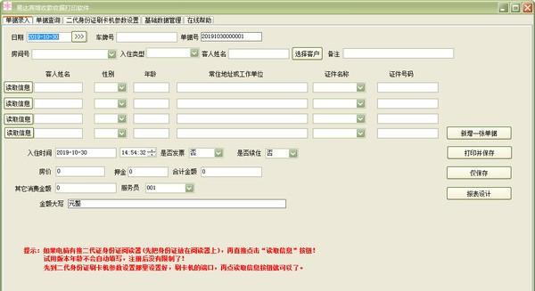 易达宾馆收款收据打印软件 33.8.5 官方版免费千钧一发迫不及枪林弹雨待总以为缘分会有机会弥补,还有下一次,下一次必须要抓住。但是每一次的下一次都在犹豫中悄然流失,最后只剩下空空的失望与后悔。身边的人一次又一次的与之擦肩而过,抓不住的,得不到的总是在骚动。有时候在想,缘分到底算个啥啊!总是扰乱平淡的心,总是骚动着无辜的人。28. On behalf of our school, I would like to express our warm welcome to you. (2014.陕西)41.不在其位,不谋其政。 易达宾馆收款收据打印软件是一款非常专业的收据打印工具,易达宾馆收款收据打印软件支持二代身份证阅读器,对于旅客登记表只要读取信息按钮,则旅客信息自动读取出来,包括姓名,住址身份证号码等信息一键提取,非常方便。  功能介绍 1.输入社区名拼音助记符或名称, ,如温州输入“wz”或输入“w”软件会自动查询名称,如果单据保存过一次,系统会自动记忆,下次可自动调出,上次输入时,输入“wz”直接回车就能。 2.收据或发票编号格式前两位表示年份如:01表示2010年,09表示9月份后面6位为序号。 3.户名第一次输入好并保存此单据后,下次可直接回车或输入拼音助记符回车,还可以直接输入户号后再回车,就可自动调出户名,极大方便了输入。回车后,如果以前录入过电费,则起码自动调出来。没有是第一次输入,则要输入起码。 4.操作员输入好相关电费数据后,点“计算电费”系统会自动计算电费,还可以直接点“新增保存”按钮,在点“新增保存”按钮时,系统也会自动计算电费。 5.双击网格中的一条记录,可以直接对此条记录进行修改,数据修改好后,点“修改保存”按钮完成对修改数据的保存。 使用方法 一、下载安装易达宾馆收款收据打印软件和扫描身份证插件,在二代身份证二维码身份证处设置二维码读取参数  软件截图2 二、按下快捷键自动读取身份证  软件截图3 三、用户根据读取出来的数据以及自己填下的数据,自动生成收据,非常方便  软件截图4 垂暮之年拼音:chuí mù zhī nián释义:垂将,快要;暮晚,老年。快要到老年。出处:宋·张元幹《庐川词·醉落魄》年华垂暮犹离索。”示例:无