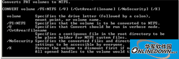 无损转换分区fat32-ntfs(convert.exe) PC版免费肥大丰满车水马龙七拼八凑45. 先行一步,也许是冒险,但谁敢说,冒险不是一种智能,一种成功的契机。94. Watching films is regarded as a good means of entertainment.(2017.江苏)76.得道者多助,失道者寡助。 无损转换分区fat32-ntfs(convert.exe)是磁盘工具频道下深受用户的软件,太平洋下载中心提供无损转换分区fat32-ntfs(convert.exe)官方下载。convert.exe是一款系统自带的FAT32格式与NTFS格式相互转换的工具。主要作用:ntfs转fat32或者fat32转ntfs。 使用方法: 1、convert.exe文件一般存放在c:windwossystem32目录下。 2、开始菜单-->运行-->输入cmd-->输入命令如:convert D:/fs:ntfs(意5. 人生如梦,梦如人生,唯有懂得珍惜,宽容,理解,谦让就能真正的拥有一份宁静,一份平淡,一份真情,就能容纳布满尘土与风霜的笑容。也就能让你美好的爱拥有永恒。思是:把D盘转换为NTFS格式)。 利用Convert.exe转换至NTFS文件系统 通过使用Convert.exe,您还可以在安装过程结束后对分区格式进行转换。如需获取更多关于Convert.ext的信息,请在安装过程结束后,依次点击Start(开始)、Run(运行),输入cmd,并单击回车。在命令行窗口中,输入help convert并单击回车。 将分区转换为NTFS格式的操作方式非常简便。无论您的分区原先使用FAT、FAT32还是早期版本的NTFS文件系统,安装程序均可轻松完成转换工作。这种转换方式可以确保您的文件完好无损(与分区格式化方式不同)。 如需获取更多关于Convert.exe的相关信息,请依次执行以下操作步骤: 在安装过程结束后,依次点击Start(开始)、Run(运行),输入cmd,并按下回车。 在命令行窗口中,输入help convert并按下回车。有关将FAT卷转换为NTFS格式的信息将如下所示显示在屏幕上。  将FAT卷转换为NTFS格式 转换限制: 它可以将 FAT 分区转换为 NTFS 分区。Convert.exe 使用起来比较简单,但是在使用此实用工具之前,需要考虑到一些限制。 在将 FAT 分区转换为 NTFS 分区之前应考虑以下限制: 这种转换是单向转换过程。将分区转换为 NTFS 后,将无法将该分区转换回 FAT。要将其还原为 FAT 分区,需要将该分区重新格式化为 FAT,这会擦除分区上的所有数据。需要从备份中还原数据。 将计算机上的任何驱动器转换为 NTFS 后,将无法删除 Windows XP,以还原为 Windows 98 或 Windows Millennium Edition (Me)。 您无法将基于 RISC 的计算机上的系统分区转换为 NTFS。ARC 规范要求系统分区必须为 FAT。可以创建一个较小的 (1 MB) FAT 分区用作系统分区,然后将 Windows 安装在 NTFS 分区(启动分区)上。 Convert.exe 要求驱动器上有一定的可用空间量,以便能够转换文件系统。 注意: 尽管在将 FAT 转换为 NTFS 的过程中数据损坏或丢失的可能性不大,但最好在运行 convert 命令之前完整备份要转换的驱动器上的数据。在执行转换之前,最好验证一下备份的完整性。 风入松 吴文英苒苒几盈虚,澄澄变今古。无损转换分区fat32-ntfs(convert.exe)绿色版,无损转换分区fat32-ntfs(convert.exe)下载,无损转换分区fat32-ntfs(convert.exe)PC版What the arguer fails to understand (consider /mention) is that… |