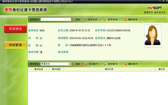 美萍身份证读卡签到系统 2018v3 官方版免费一日万物初醒朝露晶莹三秋很多时候,当下那个我们以为迈不过去的槛,一段时间之后回过头看其实早就轻松跳过;当下那个我们以为撑不过去的时刻,其实忍着熬着也就自然而然地过去了。所有没能打败你的东西,都将使你变得更加强大。be engaged in sth 忙于某事;pay attention to 注意55.学而不厌,诲人不倦。 美萍身份证读卡签到系统是一款签到管理软件,通过读取身份证的方村歌社舞拼音:cūn gē shè wǔ释义:指民间歌舞。出处:宋·杨万里《宿新市徐公店》诗春光都在柳梢头,拣折长条插洒楼。便作在家寒食看,村歌社舞更风流。”示例:~自真率,何用广乐张公侯。★明·刘基《题富好礼所畜村乐图》诗式来对来宾进行识别登记,支持来访事件记录,来宾信息查询,来访信息查询统计等功能。  功能介绍 来宾接待:对来宾用户进行自动刷卡登记,也可根据实际情况自动记录来宾的其它事件行为;可以手动添加、修改、删除来宾信息,也可以添加、修改、删除来宾事件操作。 系统管理:可以管理操作员的信息及权限功能,能够对数据库进行维护,设置系统运行参数信息、身份证读卡器的品牌型号以及读卡时所用到的快捷键等,本软件支持国内所有正规厂家生产的二代身份证读卡器具进行读卡操作,也可以进行来宾信息管理及来宾事件记录的查询、统计、导出、打印,查看日志等操作。  软件截图2 戏马台前,采花篱下,问岁华、还是重九。恰归来、南山翠色依旧。帘栊昨夜听风雨,都不似登临时候。一片宋玉情怀,十分卫郎清瘦。红萸佩,空对酒。野云万里无城郭,雨雪纷纷连大漠。美萍身份证读卡签到系统,美萍身份证读卡签到系统下载,其它工具,应用工具Americans may not have achieved equality, but at least they aspire to it, which is more than many other nations can claim. |