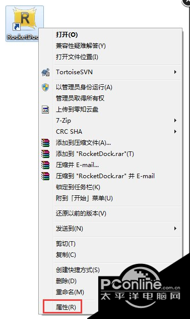 5、接下来我们在桌面上找到RocketDock软件的图标,然后鼠标右键点击后在弹出的菜单栏中点击“属性”,在属性界面,我们在快捷方式选项下再点击“打开文件位置”选项。
