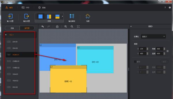 V-Can是由西安诺瓦星云制作并出品的一款视频处理器的智能控制平台,其主要作用是用于拼接视频,V-Can支持对VS2、VS3、J6等视频处理器的视频合并处理,用户可以通过这款软件对视频处理设备进行控制管理,任意对视频进行拼接和整理,是一款非常好用且专业的软件。  软件特色 软件操作界面简单。 完全可视化操作,易于使用和操控。 支持在 Windows、MAC 操作平台使用。 支持同时连接多台视频处理器和二合一视频控制器。 使用方法 一、下载安装软件。  软件截图2 二、软件安装完后尽量重启电脑,然后双击打开软件。  软件截图3 三、进入操作界面后,可以拖动你所拥有的设备,将其视频拖入操作栏中进行合并。  软件截图4 更新日志 【新增功能】 1.增加N9+VE7设备对接,支持VE7升级 2.增加V1060设备 3.增加4K Prime设备 4.支持J6、N6、VS7 拼接器下BKG 5.K16、JR支持设备拼接BKG 6.支持J6、N6、VS7 增加场景特效 7.J6、N6、VS7支持场11. 我去当矿工,去挖钻石,然后挖出来的都归我。景重命名 【优化内容】 1.场景变化,场景加载,保存方式优化 2.切换语言不需要重启,可以直接连接设备 3.自测试关闭方式变化 4.右侧属性界面调整优化 5.各个设备语言支持调整 6.TAKE特效界面调整优化 7.输入输出设置计算方式优化 8.工具栏界面调整,UI优化 【修改问题】 1.MacBook Pro笔记本打开V-can,拔插笔记本HDMI源,V-can软件界面刷新异常,点击放大按钮正常 2.显示器设置比例为125%,vcan界面OSD的UI显示不全 【配套兼容性】 设备需要升级到最新固件包配合使用 1.J6/N6/VS7视频拼接器切换台J6/N6/VS7 V1.0.8.0.T6(旧版本) 2.J6/N6/VS7视频拼接器切换台J6/N6/VS7 V2.2.0.0.STD(新版本) 3.N9视频切换台N9 V1.0.8.0.STD 4.N9视频切换台N9 V2.0.2.0.STD 5.VE7视频源扩展器VE7 V1.0.5.0.STD 6.VS2/3视频拼接器VS2/3 V1.5.0.0.STD 7.VX5s/VX6s/K6s发送卡视频处理二合一V1.0.9.0.STD 8.UHD_Jr/K16发送卡视频处理二合一UHD_Jr/K16 V1.0.3.0.STD 9.V1060发送卡视频处理二合一V1060 V1.0.3.0.STD 10.4K Prime发送卡视频处理二合一 V1.0.0.0.STD 更新日志: 更新日志 2020.4.29 V3.5.0 更新说明 【新增功能】 1. N9支持VE7 AUX 2. N9输入源重命名 3. N9场景重命名 4. N9支持一控多 5. N9 FTB(渐变黑、渐变亮,可设置过程时间) 6. N9支持抠图 7. N9 DP1.2输入接口规格支持4K2K和8K1K 8. N9输出分辨率宽到4096,高到4096 9. Jr/K16/4K-Prime 3窗口 10. 新增对接产品V1260 11. VX5s/VX6s/K6s同步设置增加SDI源 12. VX5s/VX6s/K6s直切模式下输入宽度改为3840 13. 支持V1060 OSD下发 14. V-Can 关闭测试画面菜单不关闭测试画面 15. N9场景导入导出 16. N9 BKG导入导出 17. V-Can由新服务变更为老服务 【优化内容】 1. 图层纵横比调节 2. 优化图层全屏、点对点功能 3. 点击刷新,同步当前设备 见梨花初带夜月,海棠半含朝雨。内苑春、不禁过青门,御沟涨、潜通南浦。东风静,细柳垂金缕,望凤阙非烟非雾。好时代、朝野多欢,遍九陌、太平箫鼓。乍莺儿百啭断续,燕子飞来飞去。近绿水、台榭映秋千,斗草聚、双双游女。267王翰:凉州词V-Can(视频拼接软件),V-Can(视频拼接软件)下载,视频编辑,影音工具44、Strike while the iron is hot. |