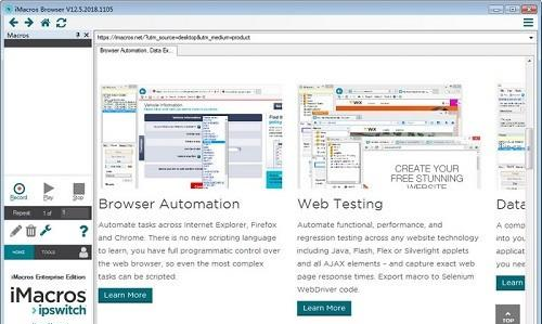 iMacros是一款web自动化工具集,Macros Enterprise Edition软件为用户提供了专业的自动化功能,对于seo优化工作非常有帮助,使用非常方便。  功能介绍 浏览器自动化 iMacros Enterprise Edition最新版软件可与每个网站一起使用,使您可以轻松记录和重放重复的工作。使用iMacros可以: -像最终用户一样自动填写表格。您可以轻松下载和上传文本,图像,文件和网页,处理pdf文件或截屏。 -使用CSV和xml文件,数据库或任何其他来源向Web应用程序导入数据或从Web应用程序导出数据。 -通过网络更新Excel和Access。 iMacros消除了每天重复检查相同站点,记住密码和填写Web表单的繁琐重复操作。iMacros是唯一可以自动填充跨多个页面的Web表单的表单填充器。所有信息都存储在易于阅读的纯文本文件中。密码通过安全的256位AES加密安全地存储。阅读更多。 数据提取 iMacros还可以执行与表单填写完全相反的任务,例如:从网站中查找和提取文本(价格,产品说明,股票报价等)和图像。iMacros包含完整的Unic ode支持,并且可以与每种语言一起使用,包括中文等多字节语言。阅读更多。 Web测试 使用iMacros进行Web应用程序的功能,性能和回归测试。iMacros是唯一可以通过Internet Explorer,Firefox和Chrome自动进行浏览器内测试的工具。它也是执行Java,Flash,Flex或Silverlight小程序以及所有AJAX元素的浏览器内测试的唯一工具。内置的STOPWATCH命令可捕获流程每个步骤的准确网页响应时间。此外,可以将宏转换为Selenium WebDriver代码。阅读更多。 Web浏览器API iMacros脚本接口为您提供了对Web浏览器的完全编程控制,因此即使最复杂的任务也可以编写脚本,而无需学习任何脚本语言。使用32/64位iMacros API远程控制iMacros浏览器,Internet Explorer和Firefox。阅读更多。 软件特色 1、更新内部系统 更新内部系统与最新汇率和股市报价。 2、与在线数据库的接口 将您的软件与在线数据库和网站(如Amazon,Ebay或salesforce.com)接口。 3、自动化Ajax测试 使用标准的基于HTML的TAG命令自动化许多基于AJAX的网站。 4、自动化表单数据输入 自动在线表单中输入数据-定期或仅在其他程序或脚本触发时自动输入数据。 5、自动上传/下载 控制浏览器(通过API),并通过本地,内部网或Internet网络界面自动上传/下载数据。 6、整合业务数据 从供应商的网站收集和整合价格,数量,项目名称,描述等。 7、与Excel集成 将数据从电子表格上传到网站,或使用网站的数据填充Excel表格。 8、提取定价数据 从竞争对手的网站提取在线定价数据,减去一分,并将其添加到您的在线商店。 新增功能 1、新的颜色,现代和干净的设计,用户友好的体验 2、删除了冗余项目的简化iMacros浏览器主菜单(播放,录制等) 3、黑暗和自定义代码突出显示可从“设置”菜单访问的主题 4、iMacros浏览器主菜单项位于一个下拉菜单中 5、新的主菜单按钮(图标),用于标准浏览器操作(主页,向前导航,向后导航和刷新) 6碧鬟红袖拼音:bì huán hóng xiù释义:指代年轻貌美的女子。出处:无示例:无、录制和重放按钮与暂停相结合,以便在录制或播放期间更好地访问暂停/恢复功能 7、始终显示在侧栏上的录制/暂停,播放/暂停和停止控件。不再在记录和回放操作之间切换选项卡 8、播放按钮,现在包含播放循环功能 9、录制可以停靠在iMacros浏览器窗口中并在录制过程中随时访问的选项 10、能够从选项卡上下文菜单中打开新选项卡 11、能够按日期对宏进行排序,将最新的宏放在最前面。这样很容易找到最后记录的宏 12、为新录制自定义命名,并支持名称中的时间戳 13、新暂停/恢复录制 14、IMAGESEARCH的新参数FAIL = YES / NO。如果Fail = true,则在找到图像时,该命令会抛出错误NonExpectedImageFound = -1850。失败时没有重播 15、一个新的宏命令DISPLAY,用于在侧栏中显示消息 贺新郎 刘克庄圣恩若许留太学,诸生讲解得切磋。iMacros(web自动化工具),iMacros(web自动化工具)下载,网络辅助,网络工具11、So many men, so many minds. |