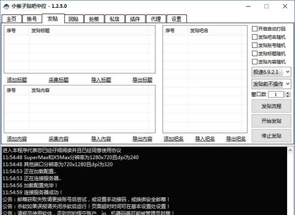 小猴子贴吧中控软件是一款贴吧管理工具,可以帮助用户对贴吧账号及贴吧进行管理,包括账号管理,发贴管理,抢楼管理,回贴管理,私信管理,插件管理等,方便实用。  软件特色 NO.1- 模拟人工代替繁琐8. 我不敢说我是,世界上最爱你的人,但我敢说你是我最用心爱的人。的人工操作 NO.2- 高效率多线程模拟器控制 功能介绍 1.账号管理 批量导入账号、导出账号,账号的吧龄、发言量、吧主、会员信息显示。 2.登录管理 多端口全国混拨登录,多线程登录。 3.发帖、回帖、抢楼、关注设置 发帖回帖的标题内容采集、标题内容导入、标题内容导出、发帖起止以及内容设置。 导出信息显示、会员采集、任务设置。 4.网络设置 宽带拨号管理、IP设置、宽带测试。 5.实用小插件 批量关注某吧、批量签到某吧、批量取昵称、批量传头像、批量改资料、提取帖子账号。 使用方法 1.下载完成后不要在压缩包内运行软件直接使用,先解压; 2.软件同时支持32位64位运行环境; 3.如果软件无法正常打开,请右键使用管理员模式运行。 楼上几日春寒,帘垂四面,玉阑干慵倚。被冷香消新梦觉,不许愁人不起。八月湖水平,涵虚混太清。小猴子贴吧中控,小猴子贴吧中控下载,网络辅助,网络工具Although it is commonly (widely / generally) held (felt / accepted / agreed) that …, it is unlikely to be true that… |