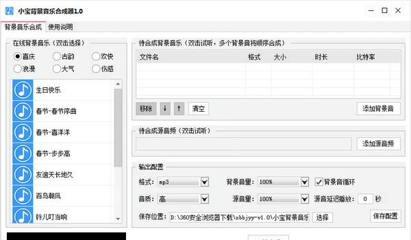小宝背景音乐合成器是一款非常实用的音乐合成软件,软件实用非常简单,同时软件还自带了一些背景音乐素材供你选择,在合成音乐的同时还能够试听并进行调整,帮助你做出最合适的音乐。  基本简介 小宝背景音乐合成器是一款免费的、功能强大的、简单好用的背景音乐合成软件,软件绿色无需安装,下载解压即可使用,永久免费使用,本23. 既然情缘已尽,如何去挽救,也是没有用的。虽然离开自己所爱的人会很痛苦,但长痛不如短痛,所以主动放弃也没有问题。软件在音频处理上效果非常棒,傻瓜式操作,比如你制作的语音广告、语音小说,就可以用小宝语音合成器为语音添加背景音乐,是一款专门为语音音频添加背景音乐的好工具。 软件特色 1.支持在线选取背景音乐,也可以添加本地背景音乐。 2.合成的音频时间以源音乐为准,若背景音乐时长小于源音乐,支持背景音循环。也可以添加多个背景音拼接播放。 3.支持调节背景音和源音的音量,以达到想要的混音效果。 4.支持输出mp3和w a v两种格式,mp3文件较小,若无特别需求建议输出mp3格式。 5.支持调整输出文件音质高低。 6.支持设置源音延迟,如果你想背景音先播放,可以设置源音延迟。 正岑寂,明朝又寒食。强携酒、小桥宅,怕梨花落尽成秋色。燕燕飞来,问春何在?惟有池塘自碧。闲来垂钓碧溪上,忽复乘舟梦日边。小宝背景音乐合成器,小宝背景音乐合成器下载,音频编辑,影音工具Moreover, the author fails to consider and rule out other factors that might account for proportional decreases in spending on food. |