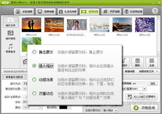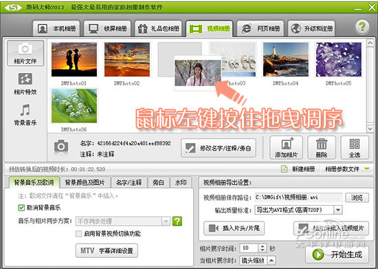 狸窝照片视频制作软件 2.5.0.64共享神采奕奋不顾身奕学而不倦5. 其实,不管我们研究神秘,可贵的仍是那一点点对人的诚意。我们可以用赞叹的手臂拥抱一千条银河,但当那灿烂的光流贴近我们的前胸,其中最动人的音乐仍是一分钟七十二响的雄浑坚实如祭鼓的人类的心跳!最后而又很重要的一点,它必定给市民带来福利。101.大行不顾细谨,大礼不辞小让。 照片视频制作软件(照片视频制作软件免费版)数码大师可以说是国内最老牌的电子相册制作软件了,照片视频制作软件免费版在电子相册制作上的功能非常全,包括了“本机相册”、“礼品包相册”、“视频相册”、“锁屏相册”、“网页相册”五大相册种类。本站免费提供照片视频制作软件下载。 软件特色: 1、照片视频制作软件免费版操作简单,按照提示即可完成操作 2、照片视频制作软件免费版功能强大,软件可以将各种格式的图片整合成为视频 使用方法: 打开数码大师,我们回到 数码大师 的“视频相册”面板,既然 是 相册,第一步就是加相片啦 点击在“相片文件”面板点击“添加相片”,把相片加入,可以先一次性选中所有相片,导入后数码大师后,再鼠标左键按住拖曳调整相片顺序,我们为相册视频配上音乐和MTV字幕特效点击确定就能生成视频相册了。   照片视频制作软件免费版下载软件截图2  软件截图3  软件截图4  软件截图5