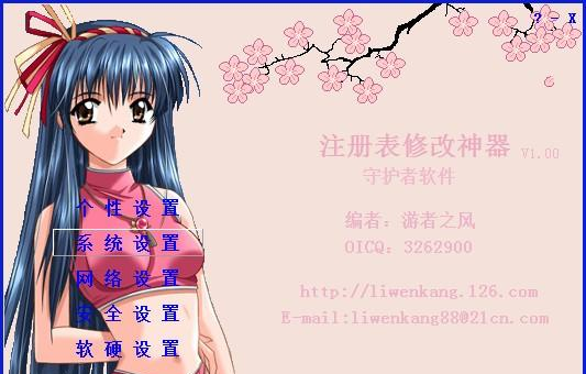 注册表修改神器软件是一款能够帮助初学者拥有快速进行注册表的各项设置的软件,它里面包括个性设置、系统设置、网络设置、安全设置、软硬设置五方面,一键设置无需费心去运行注册表编辑器。  功能介绍 【修改内容说明】 【系统设置】 1.在磁盘整理前自动关闭屏保程序 2.自动关闭计算机 3.恢复系统文件保护 4.设置恢复文件时得到提示 5.自动终止锁死程序 6.在登录对话框中增加关机功能 7.延长 Windows:终止服务时间 8.控制 CDROM的自动播放 9.设置关机对话框中的选项 【网络设置】 1.禁止系统检测网络的连接速度 2.修改默认的Emai1地址 3.设置登录时恢复连接 4.侦测锁死网关 5.启用路由功能 6.启用IP过滤功能 7.启用IC包转向功能 8.启用DNS转发功能 9.启用 Internet Explorer的代理功能 常见问题 【注册表相关术语】 1:HKEY:“根键”或“主键”,它的图标与资源管理器中文件夹的图标有点儿相像。Windows 98将注册表分为六个部分,并称之为HKEY_name,它意味着某一键的句柄。 2:key(键):它包含了附加的文件夹和一个或多个值。 3:subkey(子键):在某一个键(父键)下面出现的键(子键), 4:branch(分支):代表一个特定的子键及其所包含的一切。一个分支可以从每个注册表的顶端开始,但通常用以说明一个键和其所有内容。 5:value entry(值项):带有一个名称和一个值的有序值。每个键都可包含任何数量的值项。每个值项均由三部分组成:名称,数据类型,数据。 6:字符串(REG_SZ):顾名思义,一串ASCII码字符。如“Hello World”,是一串文字或词组。在注册表中,字符串值一般用来表示文件的描述、硬件的标识等。通常它由字母和数字组成。注册表总是在引号内显示字符串。 戏马台前,采花篱下,问岁华、还是重九。恰归来、南山翠色依旧。帘栊昨夜听风雨,都不似登临时候。一片宋玉情怀,十分卫郎清瘦。红萸佩,空对酒。骊宫高处入青云,仙乐风飘处处闻。注册表修改神器,注册表修改神器下载,其它工具,应用工具While this may be true in some cases, it is equally possible that only companies with products that are already best - sellers can afford the higher ad rates that popular shows demand. |