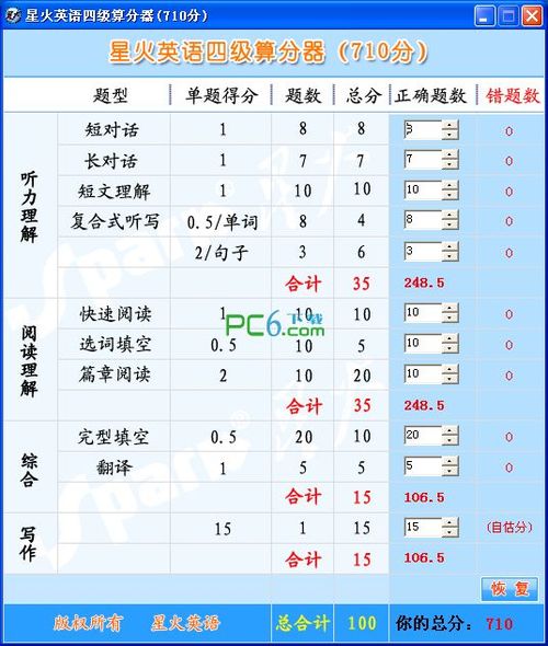 星火英语四级算分器 正式版免费一声东真心诚意击西心一意有时候你把什么放下了,不是因为突然就舍得了,而是因为期限到了,任性够了,成熟多了,也就知道这一页该翻过去了。现今,在农村地区还有很多孩子失学。我认为原因之一就是他们的家庭太贫困,而无法供应他们上学。26.皮之不存,毛将安附。