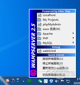 安装步骤: 1、在本站下载Wamp Server安装包,在电脑本地得到一个压缩包解压后,双击.exe文件进入Wamp Server安装导向界面点击【next】。  wampserver截图2 2、进入Wamp Server安装许可协议界面,主要是wamp的一些使用作者和使用声明信息,可以不用看选择【I accept】然后点击【next】。  wampserver截图3 3、选择安装Wamp Server的安装位置,您可以直接点击【next】,软件会默认安装或者您可以点击【Browse】弹出安装位置界面,您可以自己选择Wamp Server安装位置,选择完成后点击【next】。  wampserver截图4 4、进入Wamp Server安装选项界面,您可以自行选择是否勾选Create Desktop icon(创建创面快捷方)和Create a Quick Lanuch icon(创建启动栏快捷方式),选择完成后点击【next】。  wampserver截图5 5、准备安装Wamp Server,您可先检查一下安装位置是否正确,如果没有错误点击【install】就可以了。  wampserver截图6 6、Wamp Server正在安装中,您需要耐心等待安装完成就可以了。  wampserver截图7 7、需要您设置SMTP和输入您的邮件地址,输入完成后点击【next】。  wampserver截图8 8、Wamp Server安装完成,您可以勾选“现在运行Wamp Server软件”点击【finish】会自动打开软件。  wampserver截图9 常见问答: 一、Wamp Server怎么设置中文? 1、右键点击电脑右下角的Wamp Server的小图标。 2、在弹出的选项中选择“Language”,在二级菜单中选择“Chinese”。 二、wampserver怎么启动(图标颜色变为绿色) 1、右键点击我的电脑,在弹出的选项中点击【管理】。 2、打开计算机管理界面找到左侧的【服务】,然后在右侧找到“SQL Server Reporting Server”选项。 3、右键点击停止。 4、重新运行WampServer,如果图标已经变了绿色就表示运行成功了,如果还是橙色请继续往下看。 5、然后返回管理界面,点击做的的【Internet】选项,在右侧管理服务器点击【停止】。 6、重新运行WampServer,橙色的小图标就会变为绿色的了。 Wamp Server是一款PHP集成安装环境。Wamp Server拥有PHP扩展、Apache模块,有了Wamp Server只需要你用鼠标点击就可一键搞定,省去了你配置环境的时间,Wamp Server可以让你腾出更多精力去做开发。本站为您提供Wamp Server官方版下载。 城上风光莺语乱,城下烟波春拍岸。绿杨芳草几时休?泪眼愁肠先已断。死别已吞声,生别常恻恻。wampserver,wampserver下载,wampserver,64位中文版,wampserver,64位下载,wampserver,64位官方下载12.Its never too old to learn. 活到老,学到老。 |