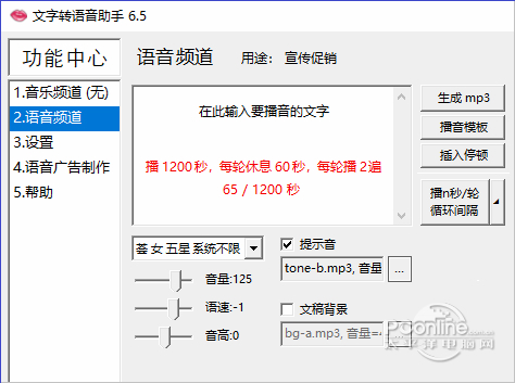 文字转语音助手 6.5 正式版免费龙如鱼月光皎洁得水潭虎穴37. 月亮西斜了,一副意兴阑珊的样子。有鸟啼,粗嘎嘶哑,是乌鸦。那月亮被它一声声叫得更黯淡了。江岸上,想已霜结干草。夜空里,星子亦如清霜,一粒粒冷艳凄绝。我设法说服了我的同学接受我的想法。78.孔子登东山而小鲁,登泰山而小天下。 文字转语音助手,文字转换语音软件,语音合成软件,文字转mp3软件。接近真人发音,可添加背景音乐。支持循环播音:每次播n秒或n轮,可设置每轮的间隔。可制作带背景音乐的语音广告:音乐和语音混音穿插,合成mp3文件,保存到U盘,插到音响上循环播放。  软件截图 【软件详述】 一、间隔循环播音 --------------- 1.每次播n秒或n轮,可设置每轮的间隔。 2.采用优质中英文语音库,接近真人发音。 3.可放大语音音量,而别的播音软件声音太小。 4.播音模板包含了文稿、音量、语速、提示音。 5.支持提示音,播放语音前可先播放提示音。 6.支持文稿背景,可实现有感情的播音。 7.每个停顿符◢停顿三分之一秒。 8.可设置播音员的语速、音高。 9.自带多个提示音、文稿背景。 二、语音广告制作 -------------48. 爱过了就不要轻言说后悔,伤过了才知道爱的痛苦,人没有一帆风顺的,要走过低谷才会看到光明。-- 1.音乐和语音混音穿插,合成mp3,放到音响上循环播放。 2.背景音乐和语音交叉时,可设置音乐淡入淡出的时长。 3.可在结尾追加空白,以此控制 mp3 循环播放的间隔。 4.背景音乐资源:提供免费下载海量音乐的渠道和方法。 更新日志: 全面优化升级。 朱颜自改,向年年、芳意长新。遍绿野、嬉游醉眼,莫负青春。189杜甫:阁夜文字转语音助手,其它工具It is hoped (suggested / recommended) that great (continuous / persistent / sustained / corporate) efforts should be make to control (check / halt / promote) the growth (increase / rise) of … |