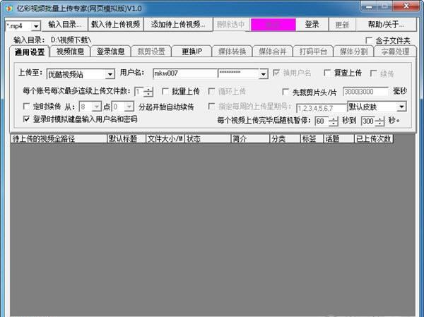 亿彩视频批量上传专家是一款视频批量上传工具,亿彩视频批量上传专家可以帮助用户模拟真人上传视频,使用非常的方便,有需要的用户可以下载使用。  基本简介 亿彩视频批量上传专家模拟人工操作IE网页向视频平台网站,比如优酷视频站,进行上传视频的操作,可以批量挂机上传,安全稳定,保护你的金贵的账号,是你上传视频的辅助帮手。 更新日志 修正在上传过程中账号切换时有时卡死、视频上传过程有时卡死的严重问题; 新增运行过程中卡死时自动监测和恢复功能; 新增断开宽带连接换IP的功能。 烛影摇红 张抡芳心向春尽,所得是沾衣。亿彩视频批量上传专家,亿彩视频批量上传专家下载,媒体管理,影音工具4、A common danger causes common action. |