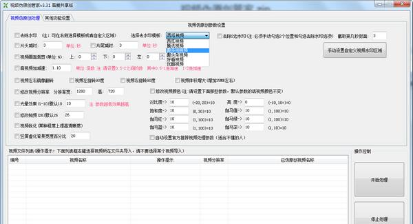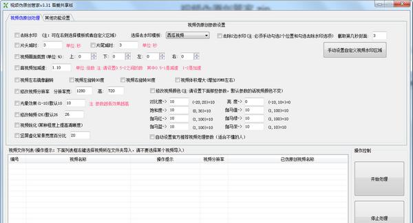 视频伪原创管家是一款专门供营销号使用的免费视频伪原创软件,在这个平台时代,很多用户都会做一两个营销号去搬视频制作,通过视频伪原创管家就能一次性去除多个视频的水印,还能用软件对视频做一些微小的处理,从而变成一个伪原创视频,从而获得平台的收益,有需要的用户可以下载使用。  基本简介 视频伪原创管家是一款多功能视频处理软件,支持视频标题伪原创、添加片头片尾、去片头片尾、去水印支持多个平台,也可以自定义勾选1处或者2处的视频水印位置。 功能介绍 1、支持同时处理多个视频,软件会自动判断你电脑支持同时处理几个视频,电脑配置好的话视频处理速度明显能感觉到快,可以同时处理5个视频以上。支持视频加速,只要你电脑显卡是N卡,可以提高视频处理速度,比如原来处理1个需要3分钟,加速后只需1分钟左右。软件支持设置视频处理超时,比如超过视频处理超过10分钟就自动停止该视频处理任务。 2、支持多种视频处理功能,自由自合,软件全自动帮你处理视频,如果你什么也不懂,也可以勾选软件推荐的参数,非常简单,如果懂得自己设置处理出的视频销重效果会更佳。 3、支持视频去水印功能,软件自带多个平台的模板,模板就是不用自己设置参数,软件帮你设置了,目前支持:优酷、腾讯、趣头条、趣多拍、好看、西瓜平台。软件还支持自定义勾选视频去水印位置,支持勾选2处,比如遇到左右2边都有水印的视频,那么软件也一样可以勾选去除,非常不错。 4、支持视频标题伪原创处理,支持多个伪原创接口,伪原创接口可读性是市面上比较不错的。支持视频处理完后自动关机、删除原视频文件。 5、目前视频处理功能支持:视频去水印、视频增加片头|片尾功能、视频加速处理(需要电脑显卡支持)、视频左转、右转、左右镜像翻转、视频画面上下左右裁剪、视频片头减时(去除视频前面N秒的视频)、片尾减时、音视频加速(加快或加慢视频播放速度)、修改视频分辨率(这个需要修改成和导入的视频差不多的分辨率,修改参数太大可能会失败)、光晕效果(设置5就能明显感觉到光晕效果,勾选这个处理速度会比较慢)、修改帧频、视频锐化(可以把一些模糊的视频锐化的清晰一点)、竖屏视频虚化背景(默认25,越高虚化的越模糊、这个处理也是比较耗时间的)、修改视频颜色(提供了很多参数供大家设置、比如想让视频蓝一点就设置伽马蓝的参16. 失恋不失志。失恋后决不萎靡不振,失去对事业追求的志向和信心。数大一点)、视频体积增大。如果你不懂功能意思可以自行百度。比如:百度搜索【光晕效果】 使用方法 一、下载打开软件,在下方的文件列表右键导入视频文件夹。 二、在上方的祛除水印功能模块,用户可以选择预设的模板祛除。  软件截图2 三、点击批量处理即可。 注意事项 必须注意:如果要去水印,必须勾选去水印,软件中的自定义去2边水印勾选的话是可以去2边水印,前提是必须勾选软件中的去水印 木兰花 晏几道猿啼洞庭树,人在木兰舟。视频伪原创管家,视频伪原创管家下载,视频编辑,影音工具11、So many men, so many minds. |