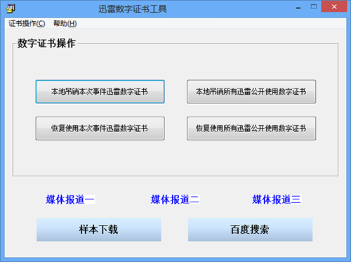满城尽是乌龙指,满城尽是迅雷和病毒,这里我们姑且不论样本是否为病毒、木马,但有一点基本可以确定,那就是样本或许带有瑕疵。从技术的角度讲,如果有童鞋不喜欢、不接受、不认可,那么完全可以将迅雷的数字证书手工吊销,为此动了动小手,做了这样的一个小程序,方便大家的使用,内含迅雷历年使用过的VERISIGN品牌的代码签名证书,可以选择吊销最新的,也可以选择全部吊销,同时程序提供恢复功能。  更新日志 1.1.0 更新: 1、添加迅雷两张由GlobalSign签发的代码签名数字证书; 2、使用NSIS编写,程序兼容性更佳,体积更小巧; 3、不再提供单独吊销迅雷单张证书的功能。 晚雨未摧宫树,可怜闲叶,犹抱凉蝉。短景归秋,吟思又接愁边。漏初长、梦魂难禁,人渐老、风月俱寒。想幽欢土花庭甃,虫网阑干。残云归太华,疏雨过中条。迅雷数字证书工具,系统安全80、Give as good as one gets. |