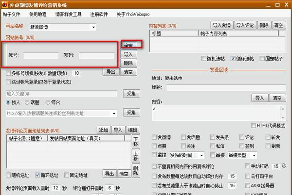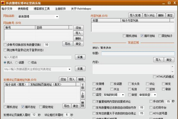 外虎微博发博评论营销系统 19.0 免费版免费彤云有口无心密鸡犬不宁布受伤害能磨练你的心志,受欺骗能增长你的见识,受遗弃会教你自立的本领,受批评能助长你的智慧。29.经济/心理负担 financial burden / psychological burden27.辅车相依,唇亡齿寒。 外虎微博发博评论营销系统是外虎8. 失恋的火山在你生活中爆发了,你在精神上要放松放松再放松,其实失恋也没什么大不了的,不能再在一起,当然要分开,应该为自己的决定感到骄傲。软件专门为网络营销人员创建的一款为微博营销的软件,外虎微博发博评论营销系统功能强大,支持自动发文,自动转发,自动评论等功能,同时可以登录十个或者以上的账号,是网络营销专员在微博方向的一个非常好用的软件。  软件特色 外虎新浪微博发博评论转发关注签到点赞监控高级系统软件, 可实现多帐号切换登录自动批量发微博、发话题、评论、转发、私信、关注、签到和点赞,并且可以自动监控实时评论。 软件同时也支持关键词采集微博帖子或提取粉丝或好友列表用户,进行自动批量评论。支持批量导入帐号,微博帖子地址,以及评论内容。分别有随机、顺序、循环或固定发布选项,可组成多达18不同组合评论方式。还有发布的时间间隔设置和次数限制设置,以及定时关闭程序等功能选项,以满足不同用户要求。 软件采用人性化的界面,不需要太多的设置。模拟手工评论原理,开放透明的环境,让用户可以监控整个评论过程,是微博空间信息发布推广营销用户的得力助手,让您可以从繁琐的手工程序中解脱出来,把发布工作交由软件系统来完成。 使用方法 一、下载安装软件,进入操作界面  软件截图2 二、点击添加,在账号处登录账号密码  软件截图3 三、进入微博官网,开始自动发文  软件截图4 常见问题 如何导入帐号、目标地址和帖子内容? 1. 导入帐号方法:首先用TXT文本编辑,前面是用户名,后面是密码,中间用一个空格分开。然后分行,以次类推。 如果想多帐号切换的,可勾选多帐号切换登录这个选项。如果已经都处于登录状态了,可勾选跳过帐号登录选项,直接进入发布阶段。 2. 添加发微博、发话题、发头条、评论、转发、关注、点赞、私信、签到、监控等目标页面地址的方法: 点击添加按钮,添加一个帖子名称(不填也可),添加目标页面的地址(这个一定要正确填写),用浏览器打开,在它的地址栏上把目标的页面地址复制粘贴到程序地址框内(如图二a所示),然后点击确定按钮,地址就加入到列表里面了。列表中已有的地址,可以直接选中它,不用的可以删除或清空。 如何添加监控页面地址? 监控页面地址就是目标用户微博首页地址或某个帖子列表地址,这样软件才可在该用户有发布新帖子时候或这个列表页面有新增帖子时候,检测到并立即对他进行抢评。 批量导入目标页面地址的方法: 建立一个TXT文本,然后在TXT文本里面一个目标帖子地址一行,然后分行,以此类推。 批量采集目标页面地址的方法: 软件有通过关键词批量采集帖子地址,和采集粉丝或好友列表帖子地址两种功能。采集完这些地址后,即可对这些地址进行批量评论、转发、关注、点赞、私信或监控了 九 日周南留滞古所惜,南极老人应寿昌。外虎微博发博评论营销系统,外虎微博发博评论营销系统下载,进销存管理,行业软件78、Wine in, truth out. |