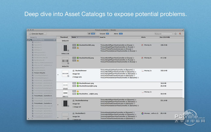 Slender Mac版 2.2.3收费亲有头无尾密无门庭若市间37. 缘分有时候,就是各种的混搭。你以为适合自己的人,最后反而会分手。而你以为完全不搭的人,反倒是能过上一辈子。因为感情绝不是适宜就能在一起,而是越能有新鲜感,就越想要在一起。所以,不要纠结于适宜不适宜。爱,是相配的证明。能爱上,就是最适宜的。很多新的楼房建了起来,路也都拓宽了。116.非学无以广才,非志无以成学。《诫子书》 Slender is one of those rare tools that fits neatly between development and design. Slender wi13. 记住。不是伤心就一定要哭泣。所以,不要那么吝啬你的微笑。许多的人,爱一生,恨一生,痴念一生,却也只能惆怅一生,遗憾一生。路总是坎坷的,平坦的路会失去人生的意义。同样的,爱也是如此,因为痛才要更加珍惜,不要放他离去。有时候,我们需要的,只是一颗静下来的心。ll scan your Xcode or Web projects and provide information on how image assets are being used. Exposing retina issues, unused assets, wasted space, and designer mistakes. ? Scan hundreds of file types for iPhone, iPad, Universal, Web, and Image projects. ? See how assets are being used whether static, dynamic, of fuzzy. ? Find warnings and errors on images including retina problems. ? Detection of duplicate images by filename or content. ? Quickly see what is taking up space in your project. ? Advanced image compression techniques. ? Automated removal of unused assets. ? Version Control friendly. ? Real time searching and filtering. ? Multiple project support with per source file information. ? Automatic detection and handling of embedded projects. ? Full support for Xcode Workspaces. ? Generate beautiful PDF reports on asset errors to share with your team.  Slender Mac版 截图1 Slender的新功能