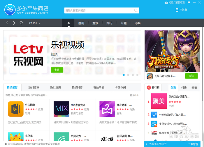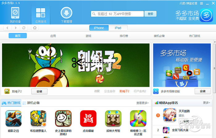 多多市场 2.0.26 正式版免费目空九霄得意忘形云外一切29. 取一枚青苔寄予流年,于月影下,静听远古传来的吟唱,这是生命中从没有体验过的一种精神快感。29. We should take an active part in sports and outdoor activities frequently. 2014.陕西157.草枯鹰眼疾,雪尽马蹄轻。《观猎》 多多市场是一款全面支持iPhone、iPad、iPod touch的IOS应用下载和安装工具。他不仅具备操作简单、使用安全、快速下载等特点,并且无需越狱,就能免费安装使用海量正版应用,其内容更是与苹果商店保持同步,让用户随时第一时间发现好玩有趣的应用,做果粉们的贴心助手!本站提供多多市场pc端下载。  多多市场pc端 官方下载软件截图1 软件特色: 1、多多苹果商店无需越狱免费下正版 2、不用注册Apple ID就可安装使用 3、海量APP完全免费,同步更新 4、界面清新,内容有爱 5、智能识别设备,不需要手动操作 6、多多苹果商店软件小巧高效,占用系统资源极少 安装步骤: 1、多多市场pc端下载后,单击【下一步】。  多多市场pc版软件截图2 2、选择软件安装路径后,单击【安装】。  多多市场pc版软件截图3 3、稍作等待后安装完成。  多多市场官方下载软件截图4 使用方法: 一、使用软件将APP下载到设备中的操作方法 1、在没有连接设备的情况下,点击多多图标,打开会直接出现应用游戏。  多多苹果商店软件截图5 2、连接设备后,软件会自动识别出设备。点击我的设备,可查看设备是否已经与多多连接成功及设备基本信息。 3、回到首页,找到要下载的软件或者游戏上,鼠标移到要下载软件和游戏上会出现安装按钮,点击安装键。  多多苹果商店软件截图6 4、查看下载管理,随时查看下载情况。 5、下载完成后APP会自动安装到设备上。 6、APP安装成功到设备上,开始畅爽体验吧! 二、更改下载路径的方法 1、运行软件,单击右上角的菜单图标,单击【设置】。  多多苹果商店软件截图7 2、修改路径后单击【确定】即可。  多多苹果商店软件截图8 更新日志: 1、多多苹果商店解决XP下不能运行多多的问题 2、解决自动重复安装ios多多的问题,bid改为com.duoduo.app 3、解决windows8下不能拖拽安装的问题 常见问答: 1、多多苹果商店与APP Store有什么区别么? 多多苹果商店在作用上相当于appstore,软件方面多多苹果商店跟AppStore也是同步的。不过它不用越狱,同时不用注册、不用itunes、操作简单、下载快速。 2、为什么App Store里需要付费下载的,在多多苹果商店这里就可以免费下载了呢? 多多苹果商店已经给过版权费了。 多多苹果商店是一款专门为苹果系统用户下载APP而打造的软件,绿色、安全、无恶意捆绑软件,免费提供用户现下最流行的付费APP下载渠道,让苹果用户不再为寻找优秀APP资源而苦恼,推荐7. 真正的爱情是当我们老了,我还是会记得你当初让我心动的样子。将多多市场pc端下载,是一款体验感非常好的软件! 登孤垒荒凉,危亭旷望,静临烟渚。对雌霓挂雨,雄风拂槛,微收残暮。先帝侍女八千人,公孙剑器初第一。多多市场助手,多多助手,iPhone手机助手,IOS应用下载Common sense tells us that… |