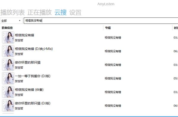 AnyListen(音乐下载软件) 1.0.9 免费版免费鹤立千狂风暴雨辛万苦鸡群12. 做人做事,心胸不可太狭隘。有些事,你真别看清,看清,心痛;人的一生,一路走来,背负了太多的重担和责任。慢慢地学会了用平常的心态面对众多的事事非非,看过了、感受过了、也忘记过了。那些花更多时间和家人在一起的人通常会更健康更幸福。《周易》14.天行健,君子以自强不息。 AnyListen是一款可以搜索非常多歌曲的软件,通过AnyListen用户可以搜索多个平台的音乐并且下载,不过需要注意的是AnyListen是一款开源软件,如果说下载后已经搜不到歌曲说明服务器已经失效,用户可以链接自己的服务器使用。  软件特色 1、用户通过软件的搜索栏目,能够快速直接的搜索歌曲,同时右击格式,可下载指定格式的音乐文件。 2、功能丰富,在个人歌单里面用户可以看到各种播放的歌单列表,还可对其进行管理操作。 3、软件支持多线程下载,能够同时下载多个文件。 4、歌曲管理功能,让你在已完成列表里可以详细的了解所有已下载的歌曲。 5、丰富的自定义设置界面,能够设置保存目录,歌曲命名,下载线程数量,同时下载任务数量,多种自定义功能设置。 使用方法 一、下载后直接打开软件,在设置栏中输入软件秘钥  软件截图2 二、然后进入云搜功能,在云搜功能中选择你要搜索的平台  软件截图3 三、输入你要搜索的歌曲就可以了。  软件截图4 45. 感情的事总是很难说清楚,我知道分手总是令人难过的,但无论如何,我永远都会站在你这一边,支持你。努力让自己快乐起来吧,好吗? 雨外蛩声早,细织就霜丝多少?说与萧娘未知道。向长安,对秋灯,几人老?龙吟虎啸一时发,万籁百泉相与秋。AnyListen(音乐下载软件),AnyListen(音乐下载软件)下载,下载工具,网络工具63、Clumsy birds have to start flying early. |
