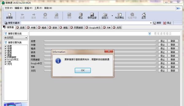 搜索通 6.0.2 免费版免费解铃还须系铃人晨雾龙骧虎步弥漫48. 许久了,或许一切冥冥中已成事实,注定这是一场如同烟花般的邂逅,许久了,我忘了自己是谁,但我一直清楚的记得你的模样。许久了,繁华如花散去,你把我遗忘在那个我们曾经相识的地方。01中国传统文化264.他年我若为青帝,报与桃花一处开。 黄巢题《菊花》 搜索通是ZDNET五星级的优秀网络信息搜索工具,搜索通整合包括网页,软件,新闻,图片,论坛等多类别近五十个搜索引擎的全方位互联网信息检索工具,采用多线程并行运作,同步开动近十个搜索引擎进行检索。内置多窗口支持的浏览器,直接浏览结果,高效易用。  软件特色 1.整合近百个各类搜索引擎,包含简体中文,繁体中文,软件,音乐MP3,股票,新闻,购物搜索,购书搜索等 2.完全兼容及嵌入IE,符合浏览及搜索习惯,搜索结果可以单个或全部分类保存 3.方便的多网页浏览器,可以同时打开多个网页,却只使用一个窗口 4.只需单击下面的窗卡,即可快速方便地切换网页,免除了多开窗口的资源浪费 5.全新升级,速度更快,更稳定,实时网上升级 6.全面支持 Win226. 爱人的离开有的时候其实是正确的选择,与其苟且着互相伤害,不如用残忍的伤害让你放手去寻找自己幸福。000 / Windows Me 及 IE 5.5 ,更新搜索引擎数据,使您用得更流畅顺快 使用方法 一、在关键词框输入你要搜索的关键词,点击搜索  软件截图2 二、可以选择你要搜索的引擎,如网站,论坛等。  软件截图3 三、在上方选择框内可以找到你要搜索的关键词的信息。  软件截图4 更新日志 1.升级引擎数据库 2.增加新搜索引擎 3.修正失效搜索引擎 丙辰中秋,欢饮达旦,作此篇兼怀子由醉卧不知白日暮,有时空望孤云高。搜索通,搜索通下载,搜索引擎,网络工具The increase (change / failure /success) in … is due to (owing to / attributable to) the fact that… |