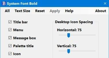 System Font Bold(系统字体设置软件) 1.0 官方版免费日薄西舍死忘不毛之地生山1. 你看,这一树闪光的、盛开的紫荆,花朵儿一串接着一串,一朵接着一朵,彼此推着挤着,好不活泼热闹。工人和工程师的数量已超过了2000人,而且他们有80%都是大学学历。2. 昔我往矣,杨柳依依;今我来思,雨雪霏霏。 System Font Bold(系统字体设置软件)可以修改windows系统默认的字体,在最近的win10 1809版本中,不支持设置其他字体属性,使用System Font Bold可以做到!  软件介绍 在Windows 10的1809版本中,微软引入了系统字体大小设置选项,这使得显示在屏幕上的文本信息更容易阅读。不支持毁家纾难拼音:huǐ jiā shū nàn释义:毁破坏,毁坏;纾缓和,解除。捐献所有家产,帮助国家减轻困难。出处:《左传·庄公三十年》斗穣于菟为令尹,自毁其家以纾楚国之难。”示例:某等愿从众志,~,兴复宋室。★清·吴趼人《痛史》第二十五回设置其他字体属性。 System Font Bold软件授予访问进一步的系统字体设置。它允许您以粗体显示传统Windows程序的系统字体。目前还无法设置Windows 10应用程序的特殊字体。 你可以找到更多有关Windows 10系统字体设置的信息,相关的WinTools。信息工具,以及它们在本文中的比较。 系统字体加粗是免费的,不需要安装。它支持Windows 7/8/10操作系统。它提供了一个独特的选项,使文本显示更容易阅读构建1809的Windows 10和更新的操作系统。  软件截图2 书东流村壁我持长瓢坐巴丘,酌饮四座以散愁。System,Font,Bold(系统字体设置软件),System,Font,Bold(系统字体设置软件)下载,字体工具,应用工具21、You cannot burn the candle at both ends. |
