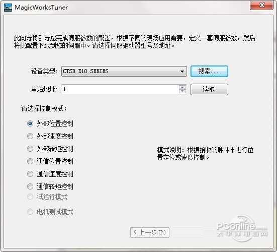运行环境 操作系统:Windows 98、Windows 2000、Windows XP、Vista、Windows 7。 硬件配置:IBM 486以上兼容机,内存128MB以上,至少500MB以上硬盘剩余空间,至少有1个RS232通讯口。 通信电缆:PC/PPI电缆用于计算机与伺服驱动器的连接。  MagicWorks Tuner