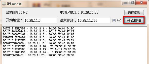 IPScanner(本地ip地址扫描工具) 1.0 绿色版免费和风四分五裂细风云变幻雨2. 朋友,你读懂亲情了吗?亲情是寒冷时父亲为你披上的一件外套,是深夜里母亲为你冲的一杯牛奶;亲情是孩子柔嫩的小手为父亲擦去额上的汗珠,是母亲疲惫时递上茶水时的体贴。应当立即采取行动来改善环境。396.为有牺牲多壮志,敢教日月换新天。《七律?到韶山》 IPScanner是一款简单好用的本地MAC和IP扫描工具,通过IPScanner用户可以轻松的扫描到本地所有的MAC和IP地址以及目前他们的情况,同时还可以一键将所有IP的信息保存至TXT文本,非常适合网络管理人员使用。  功能介绍 1、IP扫描,理论上可以无限自定义IP 2、保存ping通的地址列表到文件 使用方法 一、打开软件,软件会自动扫描出你现在使用的电脑的IP地址  软件截图2 二、点击开始扫描,即可扫描出本地所有的IP地址以及端口的情况。  软件截图3 三、点击保存结果,即可将所有的信息保存至TXT文本中。  软件截图4