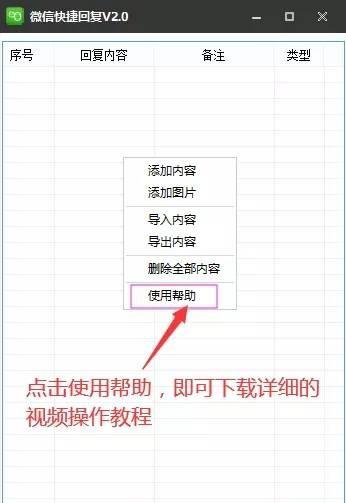 微信快捷回复 2.0 免费版免费百花盛一万紫千红视同仁开30. 冬天是一个历经沧桑的老人,沉稳,敦厚。他坐在生活了一辈子的庭院里,享受冬日和煦的暖阳。在他那纹路清晰的眉目间,可以看见早春的青葱,盛夏的热情和晚秋的收获。空气里浮动着梅花的淡雅清香。他伸出骨骼嶙峋的手,召唤一辈子相濡以沫的老伴。两个人你一言我一语,絮絮讲述起从前的故事。那些故事里有山舞银蛇,原驰蜡象,也有冰解河开,燕子归来。这一路,不管多辛苦多艰难,他们都并肩携手,从没有分开过。他们的话语时高时低,时而情辞激动,时而慢条斯理。那些飞逝而去的岁月仿佛又被拉扯了回来,近在咫尺,触手可及。渐渐的,老人们的声音消失了,取而代之的是遐思的眼神和恬淡的微笑。窗外,暮色四合,清冷的风撞着檐下的铃铛,叮叮朗朗,带来万物复苏的消息。30. The activity got us close to nature and gave us relaxation from heavy school work. (2013.陕西)228.谁知盘中餐,粒粒皆辛苦。《悯农》 微信快捷回复小工具,可以预设要回复的消息,支持文字和图片,如果不会使用此软件,可以先看一遍软件的视频教程!  使用方法 在红框区域内点击鼠标右键  软件截图2 点击使用帮助,即可下载详细的视频操作教程  软件截图3 48. 如果你觉得电影精彩,那是因为你的生活太过平淡。因为最精彩的情节,永远出现在真实的生活中。