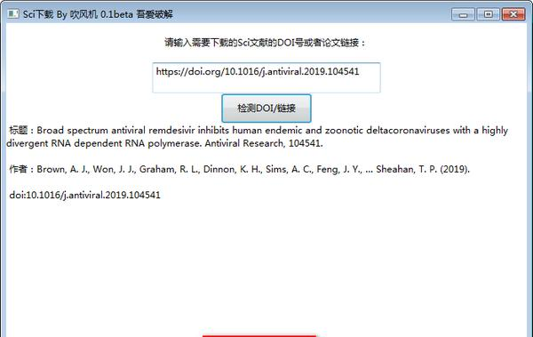 Sci下载工具 0.1 绿色版免费昂首挺胸雷电大作滔滔不绝47. 这个时间里的小草是最硕大最柔软的新床,诱惑着我们把自己的身躯无比舒坦地交给她们,没有了焦虑,没有了烦恼,在青草的簇拥下,做一个最轻松的美梦。are addicted to:对......入迷224.日出江花红胜火,春来江水绿如蓝。《忆江南》 Sci下载又名Sci文献免费下载助手,是一款由个人制作的好用的工具,非常适合各位需要写论文的用户,很多用户在写论文的时候都需要翻阅一些比较专业的论文或者文献进行比对,而SCI上的论文都是比较专业的,但是下载又大多需要收费,但是使用Sci下载就可以省去这个麻烦,实现免费下载的目的。  基本简介 因为最近才接触论文,有下载Sci文献的需求,由于Sci论文下载大部分需要收费,所以就用Python写了一个桌面GUI版本,可以实现输入Doi号或者Doi36. 有时多点糊涂会少点烦事,有时多点知足会少点烦恼,有时少点计较会多点平安,有时多点吃亏会多点平安。链接实现直接的免费下载。 使用方法 一、下载打开软件,找到你在SCI上要下载的文献的DOI链接,复制到软件的文本框中。  软件截图2 二、点击搜索,很快就能看到这个论文的大概预览。  软件截图3 三、确认论文没错的话就可以点击下载,将其下载到电脑中进行预览。  软件截图4 注意事项 检测到可以下载的时候,会出现“下载文献”的按钮,点击即可选择保存路径进行下载 文件名按照所查询文献的名称进行默认配置 下载完后可以之间打开文献进行查看,此处调用系统默认pdf阅读器 如果提示下载失败,可以点一下下方的“试试手气”,此时会打开下载页面,有可能需要自行输入验证码即可下载。 西园夜饮鸣笳。有华灯碍月,飞盖妨花。兰苑未空,行人渐老,重来是事堪喈。烟暝酒旗斜,但倚楼极目,时见栖鸦。无奈归心,暗随流水到天涯。忽闻歌古调,归思欲沾巾。Sci下载工具,Sci下载工具下载,下载工具,网络工具To begin with, the author fails to consider health threats posed by incinerating trash. |