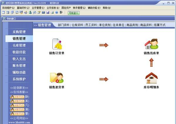 速拓饲料管理系统是一款相当优秀的软件,拥有智能订货、进货入库、进货退回、销售出库、销售退货、报损、报溢等特色功能,软件还支持捆绑销售、赠品管理、促销管理、定价管理等增强功能。 ![]() 功能介绍 一、基本功能:智能订货、进货入库、进货退回、销售出库、销售退货、报损、报溢、调入、调出、拆零、组装、盘点、借出、借入、收款、付款、预收、预付、收入、支出、成本、利润及财务会计核算等。 二、增强功能:电子称重、捆绑销售、赠品管理、促销管理、定价管理、会员管理、固定资产管理、工资管理、短信群发及员工提成等。 三、连锁功能:总店配送,门店间调拨,分门店设置商品的售价(即不同门店使用不同的销售价格),分门店设置商品的货位编号,分门店设置商品的最高库存与最低库存并可以分门店自动显示库存报警等。 四、独门密技:在软件中实现了分页技术,使得在商品资料输入,往来单位输入、商品资料选择、往来单位选择、会员管理、会员清单查询中极大提高了数据的呈现速度。通过互联网联网时使用这个功能,效果特别明显。 ![]() 软件截图2 软件特色 支持智能订货。既可以根据商品资料中设置的最高库存、最低库存、供货商及当前库存自动生成订货清单,也可以通过提取补货数据生成订货清单,还可以根据指定时间段的销量生成订单,让您的订货工作轻松、方便; 支持POS销售。可以根据需要选配打印机、读卡器、会员卡、条码枪、钱箱、顾客显示屏及小票打印机;可以根据自已喜好设计各种有特性的打印格式。快捷键丰富多样,可以自己定义,完全可以用键盘取代鼠标的操作。销售时可以适时掌握每一个商品的当前库存数,销售成本、销售毛利,可以随时盘点; 支持会员管理。可设置会员级别,不同级别可以适用不同的价格与折扣。支持会员卡储值,可以实现充多少送多少。可以自动计算会员的累计消费、累计积分、兑现积分及剩余积分情况。过生日的会员可自动提醒; 促销方式灵活多样。可以单品促销(也就是触发条件只对单一的某个商品),也可以组合促销(触发条件可以是多个商品,也就是说可以设置若干个产品合在一起满意某个条件后,就可以触发促销);既可以根据购买数量实现‘满XXX送YYY’或‘买A商品送B商品',也可以实现根据消费金额实现’满XXX元送YYY元‘或’买A商品送B商品‘; 支持捆绑销售,即销售某一商品的同时附带销售其它几种商品; 支持设置商品的“最低售价”功能,销售时若单价低于“最低售价”则不允许销售; 在选择商品时可以多选,即可以一次可以选择多个商品; 可以设置单价、数量及销售金额的核算精度即设置小数点位数; 可以适时显示往来单位(供货商,客户)的应收帐款、应付帐款、预收帐款、预付帐款; 可以实现预收款冲应收款、预付款冲应付款、应收款冲应付款;可以按单据结算应收帐款、应付帐款;可以按单据查看结算历程;可以调阅单据对应的记帐凭证;可实现对待摊费用的核算; 可以按商品类别设置售价(批发价零售价会员价售价一至五)的生成幅度,售价可自动生成,减轻了定价的工作量; 员工提成方式多样,可针对每个商品设置提成三种提成方式:数量提成率、销售额提成率及销售毛利提成率,员工的业绩及提成一目了然。可以按商品类别设置售价商品的提成率; 可以为仓库(门店)、商品类别及往来单位类别无限分级; 无处不在的显示商品图片的功能。可以直接用电脑带的摄像头拍照。也可以直接选取现有图片; 支持手工盘点(直接输入需要盘点的商品)、自动盘点(直接按商品类别提取库存)及盘点机盘点; 权限设置功能强大。可以设置每个员工的菜单操作权、单据操作权、仓库操作权及其他操作权限{比如:查看成本权(即能不能看到进价及毛利)、售价调整权(即能不能在销售时修改售价)等},还可以通过设置权限组实现对权限的快速分配; 支持商品条码打印,价签打印。可以按类别提22. 我还是很喜欢你,像风走了八千里,不问归期。我还是很喜欢你,像旧城里的老折子戏,温言软语。取库存商品,也可以从采购入库单中提取商品,也可以手工输入商品。可以自定义打印样式; 支持业务数据导入导出(比如:从其它软件中导入期初库存)、基础数据的导入导出(比如:从其它软件中导入商品档案); 所有单据、报表均可以在打印前预览,并且可以导出为Excel文件,然后根据您的实际需要进行特别编排处理; 功能强大的各类统计报表,为您提供详尽的营业报告,让您对商品进、销、存及利润等财务状况了如指掌; 进、销、存、工资、固定资产及财务管理一体化,简单易用,不懂会计、计算机也能轻松制作资产负债表、损益表等各类财务报表; 迷你计算器、迷你分析器、帐套数据的导入导出、帐套初始化及帐套压缩、修复等为维护系统的正常运行提供了强有力的保障; 网络版构建网络方式灵活,自带IP伺服器,总店与分店可以通过互联网共享数据, 不需要繁琐的网络设置和服务器配置; 支持自动上传下载数据及断网重连功能。大大方便了在网络不稳定的情况下使用本软件; 升级智能化。您只需轻点鼠标,便可通过互联网实现软件的升级,免除您升级之苦。 见梨花初带夜月,海棠半含朝雨。内苑春、不禁过青门,御沟涨、潜通南浦。东风静,细柳垂金缕,望凤阙非烟非雾。好时代、朝野多欢,遍九陌、