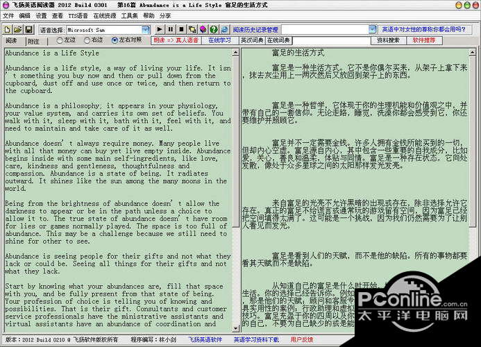 飞扬英语阅读器(在线英语阅读助手) 2012 Build 1010免费风绿水青山雨骄阳似火同舟39. 人生十字路口是一道选择题,谨慎选择才能确保正确方向,糊涂选择就易步入歧途,放弃选择就会迷失方向。45.因特网 the Internet (一定要由冠词,字母I 大写)143.儿童相见不相识,笑问客从何处来。《回乡偶书》 飞扬英语阅读器(在线英语阅读助手)是外语学习频道下深受用户的软件,太平洋下载中心提供飞扬英语阅读器(在线英语阅读助手)官方下载。 飞扬英语 阅读器(在线英语阅读助手)是一款优秀的英文 阅读软件。该软件在离线状态下可以阅读本地英语文档,联网后则可 自动通过网络获取英语阅读材料和各种英语学习资料。支持纯英文、纯中文、中英对照同步 浏览三种阅读方式。可以设置阅读时的 字体大小和 背景颜色。提供 真人 语音 朗读和TTS语音。采用TTS语音技术可朗读任意英文 文本,还可将英语文本转换保存为语音文件。用户可以根据个人需求、职业、兴趣和英语程度,选择阅读不同的内容,随时随地 学习英语。是您提高英语水平的必备软件。您不妨下载试试,相信您一定会喜欢她的。| 相关软件 | 版本说明 | 平台 | 下载地址 |