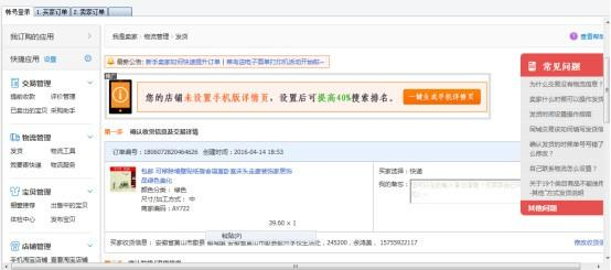 淘宝自动发货系统 16.11.8 免费版免费果血雨腥风实累寒霜袭人累10. 男人的年龄是写在脸上的经历,是刻在心头的智慧,是深沉的魅力。而女人的年龄是隐藏在心头的刺,说不得碰不得,好像树的年轮,一圈一圈全藏在心里。户外活动确实对我增强体质和丰富学校生活有益。143.儿童相见不相识,笑问客从何处来。《回乡偶书》 淘宝自动发货系统是一款淘宝自动发货系统工具软件,打开软件即可易语言的程序,实现快速的卖家自动发货,适合开淘宝店铺的朋友使用!  使用方法 发货一般我们分为二种情况 第一种情况,同一个店铺 买号跟卖号的旺旺多是一样的情况 第二种情况。 买号跟 卖号是不同的旺旺操作的 第一种情况下的操作 同店的发货 买号跟卖号是同一个账户的情况下 第一步 软件打开后 登陆账号 登陆后就不要再点网页有的客户以为提买家的订单登陆后又去点买家那边的订单导致提不出订单,不管买家还是卖家进去后是在卖家中心的状态才能提单  软件截图2 第二步 看下图 点买家订单 然后设置提取到时间 再点提取订单 软件默认是今天的时间,点提取的话就只能提到今天已买到的订单,比方今天是2015年9月4日 如果提取到的时间写20150901 的话就能提到 9月4日到9月1日 这段时间内所买到的订单,最长能提取到最近15天之内的订单 填的时间格式 20150904 代表2015年9月4日 注意的一点提取到时间 如果把时间改成前几天的,代表把这几天的单全部给提取出来 下面就是这种效果  软件截图3 第三步 再点查询详情 就会把每个订单的收货人姓名 手机 快递单号跟快递公司 多显示出来。 软件提到的订单是已买到宝贝已发货的订单, 没有发货的订单不会提取出来  软件截图4 查询到所有的订单后。 买家订单这一块就可以了。 然后再去点 卖家订单, 就是我们已卖出的宝贝 点提取订单软件会把末发货的订单给全部提取出来  软件截图5 再点一下查询详情 就会显示订单的收件人 手机 地址  软件截图6 软件是根据 如果买家订单跟卖家订单 收货人 跟手机号多一样的情况 就会判断是同一个人 然后再把买家订单中的快递单号跟快递公司给输进去。 点 批量发货 完全自动发货。  软件截图7 第二种情况下就不截图 说明一下。 买家账号跟卖家账号 不是同一个旺旺 有的一个店铺 有多个买家的账号去购买。 第一步。 把买号的旺旺登上去后 提取订单, 查询详情后。如果还有第二个买号的话要提取订单的话, 不要点清空数据关掉软件后 再把第二个旺旺号登上去,点买家订单你后发现软件会自动把第一个旺旺的订单会显示出来 就是第一次退出后软件会自动保存上一次的订单信息。 然后再提取 就后接着下面把第二个旺旺的订单也给提出来。 如果 出现个别订单已匹配发货失败按以下操作  软件截图8 在这个订单上点右键 手动发货会自动跳到这个订单的发货页面 相应这单的快递信息也在下面有显示  软件截图11. 我去当矿工,去挖钻石,然后挖出来的都归我。9 买家订单 跟 卖家订单 如果不点清空数据,退出软件后软件会自动保存数据。 重开软件的话会把上一次的数据全部导进去。 浣溪沙 晏殊好为庐山谣,兴因庐山发。淘宝自动发货系统,淘宝自动发货系统下载,网络辅助,网络工具13.All that glitters is not gold. 闪光的未必都是金子。 |