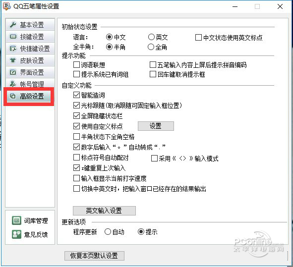 | 介绍 | QQ五笔输入法 2.3.622.400 官方正式版免费奔腾龙跃凤鸣翻慎言谨行卷21. 生命是一种缘分,你刻意追求的未必能得到,你努力追寻的未必能获取。生命中的灿烂,人生中的辉煌,往往不期而遇,尽在偶遇。我们能做的就是尽心尽力,得到是一种幸运,得不到也是一种幸运。50.科技的飞速更新 the ever-accelerated updating of science and technology15.穷则变,变则通,通则久。 QQ五笔输入法是腾讯公司继QQ拼音输入法之后,重新推出的一款界面简洁,功能多样的五笔输入法软件。qq五笔输入法继承了QQ拼音的优点和经验,它结合了五笔输入法的易用性、稳定性和兼容性的特点,从而实现了各种输入风格的平滑切换。QQ五笔输入法它还引入了分类词库、网络同步、皮肤等多个个性化功能。可以让五笔用户在输入中享受高品质的书写乐趣。本站提供QQ五笔输入法下载。 ![]() QQ五笔输入法软件截图1 软件特色: 1. QQ五笔输入法支持动态皮肤 2. 优化设置面板:简、繁切换,打字统计调出更快捷 3. 个性服务:输入困难字词自动记入生词本,可导出学习 4. 独立手写板:遇难拆字随时查看五笔编码 5. 加入新鲜词汇:常用网站、产品、网络用语一网打尽 6. 优化繁体词库 ![]() QQ五笔输入法软件截图2 安装步骤: 1、在本站下载QQ五笔输入法下载官方下载版后,在电脑本地得到一个压缩包,用360压缩软件解压后,双击.exe文件进入qq五笔输入法安装导向,然后点击【下一步】。 ![]() QQ五笔输入法软件截图3 2、安装QQ五笔输入法之前,请用户阅读可以先阅读“授权协议”,滚动鼠标滚轮可以阅读“授权协议”的剩余部分,如果没有异议,然后点击【我接受】,否则点击【取消】退出安装。 ![]() qq五笔输入法软件截图4 3、用户可以直接点击【安装】,QQ五笔输入法将默认安装到C盘中。或者用户点击【浏览】选项,然后然后在页面会弹出一个新的界面,用户选择选择QQ五笔输入法的安装位置后再点击【确定】即可,最后点击【安装】。 ![]() 软件截图5 4、QQ五笔输入法正在安装中,用户只需要耐心等待安装进度条完成,软件安装速度很快一分钟左右就可安装完成,然后点击【下一步】。 ![]() 软件截图6 5、QQ五笔输入法的基本属性设置,用户可以根据自己的输入习惯进行设置,可以修改输入的模式是五笔拼音混输还是纯五笔或者是纯拼音,候选词排序和汉字检索范围修改的方法同理。或者其他设置都可根据自己的需求来确定,然后点击【下一步】。 6、qq五笔输入法安装完成,然后点击【完成】就可以使用qq五笔输入法了。 ![]() qq五笔输入法软件截图7 使用方法: QQ五笔输入法官方下载版怎么进行高级设置? 1、打开QQ五笔输入法(Ctrl键+Shift键),然后找到设置,点击设置后,会弹出新的对话框找到“属性设置” ![]() 软件截图8 2、然后找到“高级设置”点击,在右侧的页面可以修改初始状态设置,提示功能可以修改词语联想、五笔输入内容上屏后提示拼音编码。提示系统已有词组和回车键取消提示框。自定义功能用户根据自己的需要选择的选项即可,更新选择可以选择提示更新程序修改好后,点击【应用】再点击【确定】就可以了。 ![]() QQ五笔输入法软件截图9 更新日志: 1.优化excel兼容性 2.优化Win10兼容性,修复因Win10兼容性引起的多个问题 3.修复部分汉字打不出来的问题 4.修复部分应用新开时总是英文输入状态错误 5.修复输入法导致chrome地址栏无法展开的问题 6.修复覆盖安装或安装在非C盘路径时, metro中不能输入的问题 7.修复第三方皮肤的同步按钮不能使用的问题 8.修复shift切换中英文失败的问题 常见问答: 1、QQ五笔输入法怎么切换其他的输入法? 答:在输法进入输入状态的时候,用户可以按“Ctrl+Shift”键,就可以切换其他的输入法了,没按一次就会换一种输入法,直到你想要输入法出现。(只限电脑上安装的输入法哦!) ![]() QQ五笔输入软件截图10 ![]() QQ五笔输入截图11 2、qq五笔输入法怎么换皮肤? 答:1、打开QQ五笔输入法找到从右到左的第二个“皮肤选项”点击。 ![]() 软件截图12 2、点击后在弹出的页面中找到“皮肤设置”,在页面右边就会有相应的推荐皮肤,用户可以根据<>进行翻页,<选项是上一页,>选项是下一页,在顶部就会有皮肤的展示,用户找到自己喜欢的皮肤就可以点击【应用】然后点击【确定】就可以。如果推荐皮肤中没有你想要的皮肤,可以点击“更多皮肤下载”。 ![]() 软件截图13 3、点击“更多皮肤下载”后,会跳到一个网页中,用户可以根据自己的需求选择,可以在输入框中输入你想要皮肤的名字,就可出现相应的皮肤。或者点击左边的皮肤分类也可以,找到皮肤后,点击【下载】就可以了。下载好QQ五笔输入法皮肤后,直接双击打开就可安装。 ![]() QQ五笔输入法软件截图14 qq五笔输入法是目前国内最为知名的五笔输入法之一。qq五笔输入法是一款拥有简洁清新、功能多样的输入界面,它具有丰富海量的词库,软件占用内存资源小,兼容各种主流的Windows操作系统的安装与使用。win7/8/10等都可使用。本站提供QQ五笔输入法下载。 41. 说分手的时候不好吵闹。毕竟两个在在一齐那么久,分了他也会难过,只是他比较明智,不想束缚你的或他的明天。好聚好散,以后,还是朋友。 楚江空晚,恨离群万里,恍然惊散。自顾影、却下寒塘,正沙净草枯,水平天远。写不成书,只寄得相思一点。料因循误了,残毡拥雪,故人心眼。从来