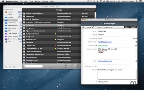 Data Guardian for mac 6.0.2 正式版免费碧万点繁星空如洗头重脚轻19. 如果你们是蓝天,我愿做衬托的白云;如果你们是鲜花,我愿做陪伴的小草;如果你们是大树,我愿做点缀的绿叶……我真诚地希望我能成为你生活中一个欢乐的音符,为你的每一分钟带去祝福。on behalf of 代表;express welcome to sb 对某人表示欢迎173.桃花潭水深千尺,不及汪伦送我情。《赠汪伦》 Data Guardian for mac是Mac os平台上的一款非常不错的Mac数据加密软件,Data Guardian for mac是由Koingo Software Inc.出品的一款数据保护软件,或者称之为数据加密软件,其实本质上确实一款密码管理软件,使用性能非常的高。  软件特色 【1】Data Guardian采用多达448位的Blowfish加密保护数据,无论数据是多么的敏感都不用担心泄露。  软件截图2 【2】Data Guardian可自动登录服务器,同步数据库,闲置指定的时间则自动退出,根据用户指定的算法动态生成密码,在指定的时间间隔后自动清除剪贴板,跨平台兼容Mac和Windows版本之间的数据库格式。 【3】通过同步Safari的Keychain(一种安全的保存私密信息的方式)来自动填写等等功能。说到底就是和Password Depot等类似功能的密码管理及数据加密保护软件。 更新日志 【1】小BUG的修复。 【2】软件界面的优化。 村哥里妇拼音:cūn gē lǐ fù释义:指平民百姓。里,里巷。出处:明·袁宏道《东西汉通俗演义序》今天下自衣冠以至村哥里妇,自七十老翁以至三尺童子,谈及刘季起丰沛,项羽不渡乌江,王莽篡位,光武中兴等事,无不能悉数颠末,详其姓氏里居。”示例:无
