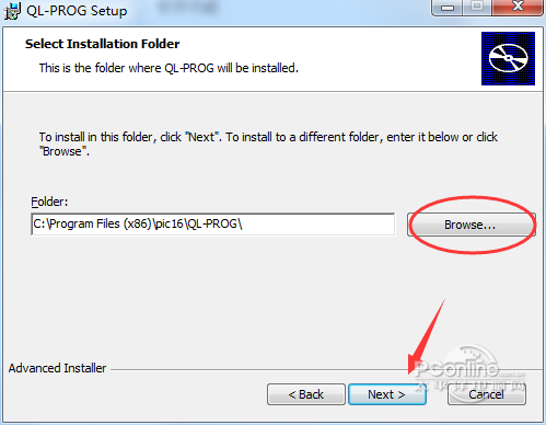 2、显示软件的安装地址,可以设置为C:Program Files (x86)pic16QL-PROG  QL-PROG