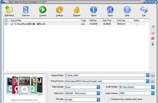 Allok Video to iPod Converter(视频转换为iPod格式) 6.2.1217 正式版其它骄阳似火三人行必有鹤发童颜我师37. 不是最重要的事,放下了并不可惜17. Television is harmful to developing minds.196.正是江南好风景,落花时节又逢君。《江南逢李龟年》 Allok Video to iPod Converter是一款很好用的视频转换软件,它可以将视频转换为Ipod所需49. 遇到对的人之后,眼角眉梢都是你,四面八方都是你,上天入地都是你,成也是你,败也是你。的格式,软件支持各种常见格式的视频源,操作简单,转换速度快的同时保证视频质量。  功能介绍 视频源支持DivX、XviD、AVI、WMV、MPG、MPEG、MP4、M4V、FLV、3GP、ASF、RM、RMVB、MOV、MOD、ASX、MKV、OGM、SVCD、VCD、VOB任何可播放的视频格式。 支持AAC、AC3、AMR、MP3、MP2、M4A、OGG、WAV、WMA等音频格式。 所有视频到iPod转换器。 所有视频到苹果电视转换器。 所有视频到H264 AVC转换器。 所有两个MOV转换器。 全MP3转换器。 所有M4A转换器。 所有支持的视频到iPod视频(MP4格式)。 支持iPod Video2(640x480)格式。 批处理文件转换。  软件截图2 软件特色 高速编码器确保视频和音频数据的平滑转换。 将任何视频文件定向到MPEG-4格式而不丢失质量。 可编辑电影场景。 支持各种字幕.file 保持原始纵横比或调整电影大小以适应iPod显示器的分辨率。 自定义定义输出音频音量。 拖放支持。 预览源剪辑 作业完成后自动关闭计算机。 简单的图形用户界面和非常容易使用。 残雪庭阴,轻寒帘影,霏霏玉管春葭。小帖金泥,不知春是谁家?相思一夜窗前梦,奈个人、水隔天遮。但凄然,满树幽香,满地横斜。别离在今晨,见尔当何秋。Allok,Video,to,iPod,Converter(视频转换为iPod格式),Allok,Video,to,iPod,Converter(视频转换为iPod格式)下载,视频转换,影音工具4.Where there is a will,there is a way. 有志者事竟成。 |