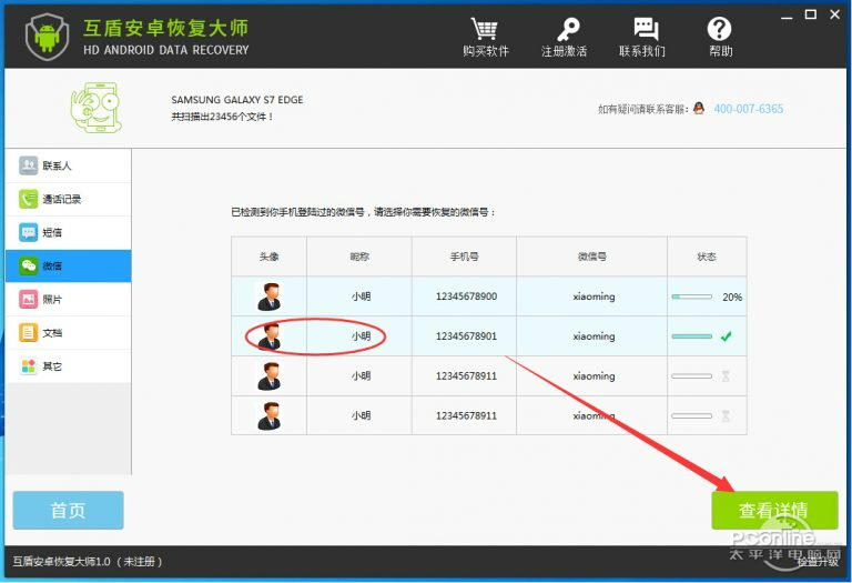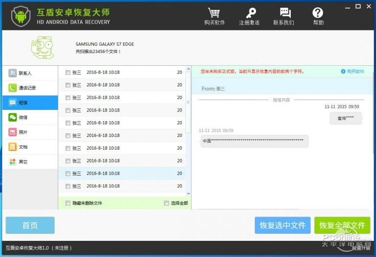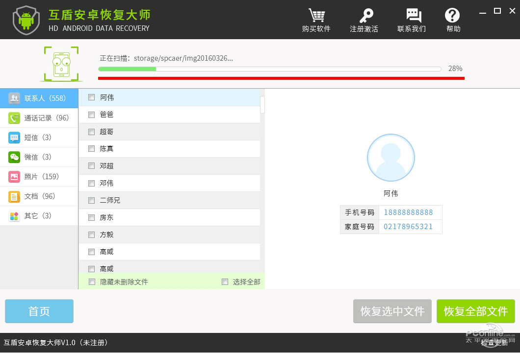 29. 失恋后要善于排除自己的痛苦,会运用旅游、散步、听音乐、看书、写作、运动、与人倾谈、更勤奋的工作等办法来分散注意力,自我解脱。 更新日志: 1.支持安卓手机免ROOT恢复数据。 2.全面支持数据导入进行查看与恢复。 常见问答: 恢复删除记录能够恢复所有的数据吗? 从数据文件中完整恢复所有的删除记录是不可能的,即使是刚刚删除立即导出扫描也几乎是不可能的。若是删除记录后继续频繁使用设备的话,产生的新纪录会覆盖掉删除的数据导致无法恢复。卸载重装微信是无法恢复出来卸载前的数据的。 怎么获得注册和授权? 1、打开软件 2、点击“购买软件”  软件截图17 3、并在软件界面激活即可 微信聊天记录恢复的方法 1、互盾安卓恢复大师将会自动连接手机设备,当软件成功连接并识别设备后,请点击“下一步”。  软件截图18 2、在软件界面中将会出现手机的两个储存磁盘,请选择删除微信聊天记录所在的手机内存磁盘,然后点击“开始扫描”按钮进入文件扫描状态  软件截图19 3、静待文件扫描结束,在左侧选择“微信”即可查看到手机登录过的所有微信账号,请选择要恢复聊天记录的微信账号,并点击“查看详情”。  软件截图20 4、接着,在微信账号下面的微信好友中找到要恢复的微信聊天记录的好友,点击勾选后,选择“恢复选中文件”即可。想要将所有微信聊天记录导出的用户,可以选择“恢复全部文件”导出全部聊天数据至电脑。  软件截图21 俗话说:世上没有后悔药。但这款互盾安卓恢复大师软件对于许多用户来说,不得不说是一个福音啊,互盾安卓恢复大师官方免费版让那些被我们误删的信息和资料能够重新的找回来,也替用户们省了不少的时间。 待月上潮,平波滟滟,塞管轻吹新阿滥。风满槛,历历数、西州更点。尽寒食雨草萋萋,著麦苗风柳映堤。互盾安卓恢复大师,数据恢复33.Do as Romans do in Rome. 入乡随俗。 |