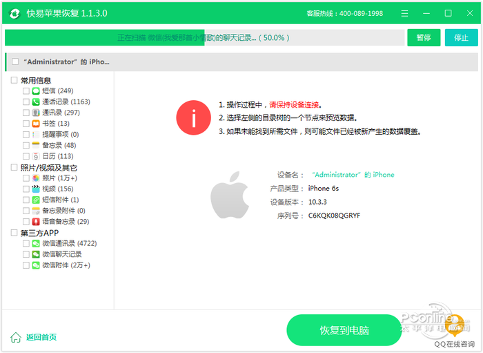 快易苹果恢复 1.5.6.1 最新版免费心燃眉之急平气络绎不绝和23. 庆幸的是,这样的人,最后分手。分手是他提出来的,我也觉得比较适宜。这样他也能够在自己的朋友面前挽回点面子。I suggest the department concerned taking some effective measures to improve the present situation.388.一失足成千古恨,再回头已百年身。魏子安《花月痕》 快易苹果恢复最新版是一款界面简洁、专业实用的苹果手机数据恢复器。快易苹果恢复最新版快速方便用户只需三步骤即可恢复数据,即使您不熟悉也可以轻松通过电脑操作找到丢失的数据。快易苹果25. 学会放手,然后张开手,平静地面对生活中每一次偶然,坦然地接受所有的必然,笑着面对新生活。恢复官方版功能全面可以恢复iPhone/ipad/iPod的丢失数据,包括照片、视频、通讯录、书签、提醒和日历等。  快易苹果恢复 iPhone iPhone X,iPhone 8 Plus, iPhone 8,iPhone 7 Plus, iPhone 7, iPhone SE,iPhone 6s Plus, iPhone 6s, iPhone 6 Plus, iPhone 6, iPhone 5s, iPhone 5c, iPhone 5, iPhone 4s, iPhone 4 iPad All models of iPad Pro, iPad Air, iPad mini, and iPad iPod touch iPod touch 5, iPod touch 4 快易苹果恢复支持数据类型 通讯录、照片、书签、视频、日历、备忘录、照片、注意、提醒、语音、文件 1、下载这款软件,解压后,双击exe文件,进入安装界面  快易苹果恢复 2、点击图示按钮可以自定义软件安装位置  快易苹果恢复 3、点击极速安装 4、软件正在安装,等待完成即可 一、软件下载和安装 二、选择恢复目标:备注:可选择“从iPhone/iPad设备恢复”、“从iTunes恢复”。 1、从iPhone/iPad设备恢复:启动软件,主界面打开以后,等待连接手机设备,此时您需要以数据线连接好手机设备和电脑: 2、从iTunes恢复:软件默认只扫描iTunes备份目录下的文件,如果用户是通过其它备份工具(或把iTunes 备份目录拷贝到其它文件夹下),则需要点击软件上的“预览”按钮自行选择扫描目录。 三、选择扫描类型:此步骤用户可根据需求选择扫描类型,注意:选择的类型越多扫描的时间越长。 四、等待扫描结果: 1、从iPhone/iPad设备恢复 此步骤根据用户勾选的扫描类型和手机数据大小所需时间可能比较长,请用户耐心等待 扫描结果。 2、从iTunes恢复: 五、预览扫描结果:扫描结束后,可先预览扫描结果,查看是否有所需数据。非会员用户文字信息类部分用*代替。 六、恢复数据:勾选所需要的数据,点击“恢复到电脑”按钮进行恢复。