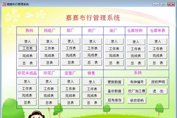 嘉嘉布行管理系统 1.0 绿色版免费挥心心相印错落有致汗如雨情感,在梦幻意境里淡看,释怀,安静,人无千日好,花无百日红,完美永存于臆念,不存于现实。每当我灰心丧气的时候我的老师总是给予我信心。77.天时不如地利,地利不如人和。 嘉嘉布行管理系统是一款布行行业经营管理软件,嘉嘉布行管55. 人生得你一人足矣,我别无她求,即使给我金山银海来交换你,我也会视之为粪土,只因你在我的内心岂止是价值连城,简直是无价之宝。理系统为用户提供购料、仓库材料、仓库布表等功能,能够提高用户的管理效率,本软件界面简洁清晰,操作便捷易懂,快来下载吧。  基本简介 嘉嘉布行管理系统官方版是由购料、网络、捻厂、织厂、染厂、销售、印花厂、定型厂、仓库材料、仓库布表等模块组成,适合布行行业全面管理。本软件是历时多年时间,由佛山市禅城区张槎街道内多个布行使用,不断修改完善。功能强大,是提高管理效率的工具。由于每个布行的管理方式各有不同,可为根据实际情况度身定造,我们能以丰富的工作经验,设计出完美的管理软件。 功能介绍 1、自动过数,减少工作的繁琐。例如在购料部录入购买材料到织厂记录后,织厂同时生成相应的记录。 2、快速查找、统计各类数据。能快速查阅每个客户的生产情况。 3、全面支持输出到EXCL,方便数据进一步整理。 4、生成各类打印统计报表。 5、支持多次加密压缩备份,有效保护数据。 千秋岁引 王安石野火烧不尽,春风吹又生。嘉嘉布行管理系统,嘉嘉布行管理系统下载,进销存管理,行业软件The main (obvious / great) problem (flaw / drawback) with (in) this argument (view / remark) is that it is ignorant of (blind to) the basic (bare) fact that … |