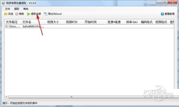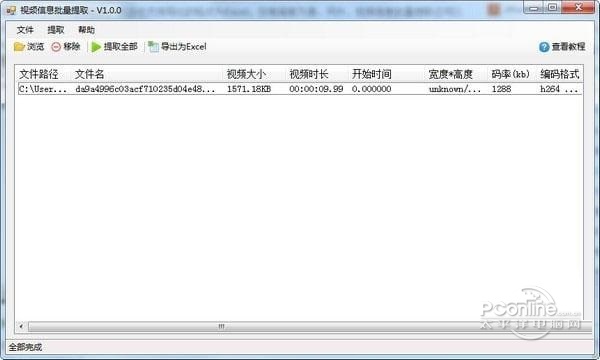 1、视频信息批量提取工具最新版可以帮助用户提取文件大小,时长,码率,编码格式等。 2、支持主流的视频格式。 3、支持导出的格式为Excel。 4、可以帮助用户将文件中的视频格式文件单独导出来。 5、为用户提供了视频文件信息的批量提取功能。 提取文件路径 文件名 视频大小 视频时长 开始时间 宽度*高度 码率(kb) 编码格式 视频格式 &nb2. 我想留下来陪你生活,一起吃点苦,偶尔也享点福。如果都不想的话,就陪你度过那些最难熬的日子,无论怎样我都在。sp; 音频编码 音频采样频率 首帧视频截图 1、下载软件安装包,解压安装 2、打开后,添加视频文件到软件中 视频信息批量提取工具 3、点击提取,选择保存路径  视频信息批量提取工具 4、完成后可以到保存目录下查看