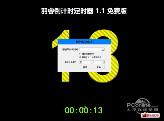 倒计时定时器 1.1 绿色版免费凤毛麟眉清目秀角为虎作伥1. 缘分,来了又走。那些珍重,不经意间,便被时光折叠成或深或浅的心痕,淡香若兰,静美如莲,轻轻打开,里面全是欣喜与珍惜。如果有一天,知道你在彼岸的风中笑着挥挥手,我也会说声再见,从此,陌路繁华,各安天涯!拈花,浅浅一笑,给珍重许一个永远。一别天涯,一生牵挂,无论念或不念,见或不见,于我,都是流年回眸时的莞尔。如果你对我以上陈述的感兴趣,请在九月一号前在我们学校的网站上报名吧。53.既来之,则安之。 倒计时定时器(电脑倒计时软件)是一款主要用于教学环境中的倒计时操作的倒计时定时器软件,例如,游戏倒计时、演讲倒计时、表演倒计时、比赛倒计时、考试倒计时等。程序内设30秒倒计时、60秒倒计时、2分钟倒计时等等选项,也可以自由设定倒计时时间,选项设定声音提醒,最后10秒声音提示,结束音乐提示,可根据自身情况,更换提示声音文件,以达到不同需求。本站免费提供倒计时软件下载。 使用方法 倒计时定时器(电脑倒计时软件)使用功能键控制F1开始、F2停止、F3选项设置、F4全屏切换、F5关于。右键菜单亦可操作控制。  全屏倒计时软件截图1  软件截图2  软件截图3  软件截图4  软件截图5 更新日志 [2013.11.8]更新到1.1版 1.添加了自定义标题功能,可以根据实际需要进行设定 2.修正了小时间显示方式的BUG 3.增加了多种分辨率及刷新率的选择 4.增加了暂停,继续功能 5.增加了更多智能化设置 6.修正了声音播放设置,采用流媒体播放形式,减少声音卡顿 7.增加了自定义倒数多少秒开始播放声音功能 8.其他代码优化处理 软件特色: 1、电脑全屏倒计时软件大界面,让数字更清晰 2、倒计时软件全键盘操作,简单易上手 安装步骤: 在本网站将电脑全屏倒计时软件下载后,右键点击选择打开,安装前提是win7/8/10平台。 更新日志: 更新 1、添加了自定义标题功能,可以根据实际需要进行设定 2、修正了小时间显示方式的BUG 3、增加了多种分辨率及刷新率的选择 4、增加了暂停,继续功能 5、增加了更多智能化设置 6、修正了声音播放设置,采用流媒体播放形式,减少声音卡顿 7、增加了自定义倒数多少秒开始播放声音功能 8、其他代码优化处理