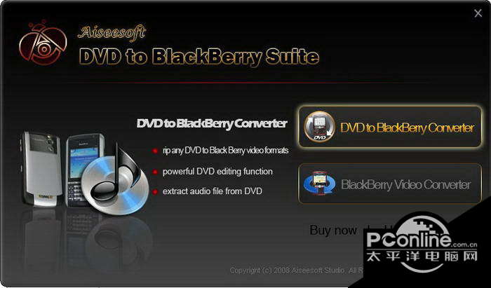 Aiseesoft DVD to BlackBerry Suite是最好的黑莓 转换软件,包括两个出色的黑莓 转换器,作为黑莓的DVD转换器,它可以帮助您转换DVD到黑莓视频格式的高品质;作为黑莓 视频转换器,它可以帮助您转换大多数格式的视频。