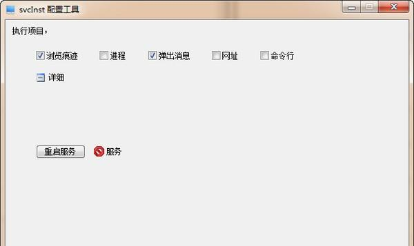 svcInst配置工具 1.0 正式版免费定时炸弹弹尽粮绝暗渡一叶扁舟陈仓16. 唯有以德报怨,把伤害留给自己,让世界少一些仇恨,少一些不幸,回归温馨仁慈友善与祥和,这才是宽容的至高境界。27. As Teachers\' Day was approaching, our class decided to hold a party to celebrate the important day. (2012.陕西)陶渊明123.盛年不重来,一日难再晨。及时当勉励,岁月不待人。《杂诗》 svcInst配置工具是款实用优秀的软件,能够配置多个任务定时执行,可设定任务执行参数,让您无需打开服务控制面板,即可直接在程序界面实现服务安装、卸载、启动、停止,而且不需要设定服务属性“启用桌面交互”,也可以弹出界面。  使用方法 1、运行执行程序 svctool.exe (以管理员身份运行) 2、单击服务下拉菜单项“安装” 3、要执行的项目打勾,并单击详细下拉菜单设定执行参数 4、单击“重启服务”按钮  软件截图2 15. 人世间有百媚千红,唯独你是我情之所钟。 彭城夜宿燕子楼,梦盼盼,因作此词陈侯立身何坦荡,虬须虎眉仍大颡。svcInst配置工具,svcInst配置工具下载,其它工具,应用工具40、Desire has no rest. |