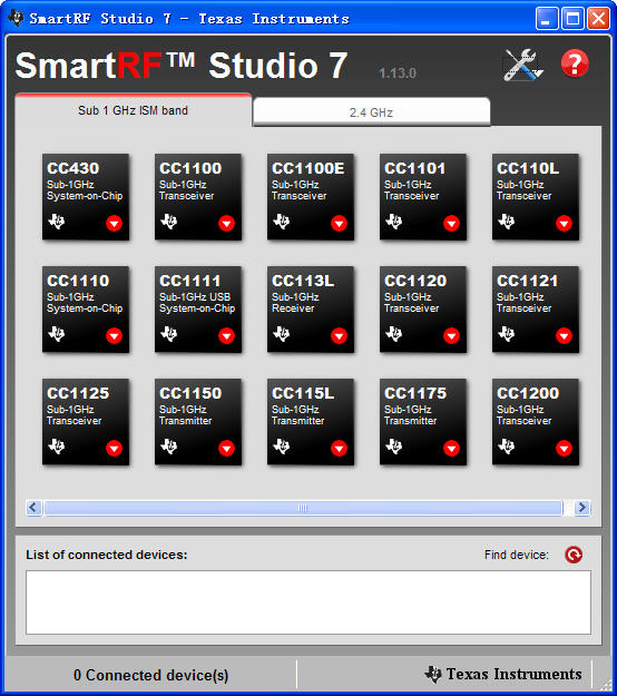 SmartRF Studio 7 CC1100,CC1100E,CC1101,CC1150