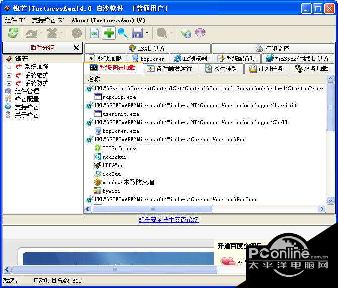 它可以读取系统几乎所有的自启动程序,它将会把 注册表,