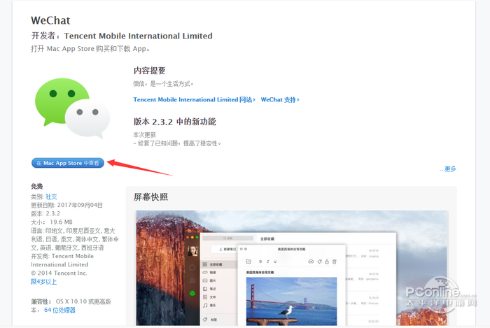 微信Mac版 3.2.1.9免费北风呼啸两画龙点睛面三刀3. 青春太好以至于做什么事都觉得浪费。“而我要说:”正因为青春如此好,所以做什么事都不必言悔。学生应该知道如何利用他们的时间。310.此生难料,心在天山,身老沧洲。《诉衷情》 微信Mac电脑版,这是微信官方推出的第一个针对PC的客户端产品。在微信多达九亿的庞大用户群体当中有一部分Mac系统用户,为此腾讯特意推出了微信Mac电脑版。(注意:目前微信V2.0.2版本官方只在Mac App Store中上架了,暂时未出官方安装包,有需要最新Mac版本微信的用户可以在小编提供的微信Mac App Store地址中下载)  微信mac电脑版软件截图1 软件特色: 1、扫描二维码和输入帐号、密码登录 2、免费发送文字信息、表情、图片 3、创建群聊,与多个朋友一起聊天 4、接收和查看公众号信息 5、支持OS X系统的通知  微信 for mac软件截图2 安装步骤: 1、点击微信mac版下载链接,即可跳转到App store界面,选择在Mac app store中查看微信Mac,并开始下载  微信mac软件截图3 2、下载完成以后,运行 微信Mac 版安装包,点击“同意”按钮继续  微信 mac软件截图4 3、接下来把微信图标移动到“应用程序”文件夹就可以了  软件截图5 4、接着在应用程序中找到“微信”图标,点击打开,再点击“打开”按钮  软件截图6 5、随后就可以看到一个用于微信登录的二维码了,用手机上的微信扫一扫它就可以登录了。  软件截图7 6、登录以后,就可以看到 Mac 版的微信界面了。  软件截图8 使用方法: 微信Mac电脑版怎么用? 1、微信Mac电脑版使用流程、功能皆和微信网页版相似。安装微信Mac版后,用户需使用微信扫描电脑上的二维码并确认后即可登录。登录成功后,界面中会显示近日的联系人账号和“文件传输助手”账号。与此同时,微信手机客户端上也会显示“正在使用微信Mac版”字样。 对于苹果电脑用户而言,这将为其在PC端使杯茗之敬拼音:bēi míng zhī jìng释义:请人饮宴的谦辞。出处:《镜花缘》第十一回吴之和对唐敖、多九公道‘二位大贤由天朝至此,小子谊属地主,意欲略展杯茗之敬,少叙片时,不知可肯枉驾?’”示例:无用微信带来方便,可向好友发送文字、表情和各类文件。产品适用于 Mac OS X 10.10(Lion) 及以上系统。  软件截图9 微信Mac如何登陆? MAC微信有两种登陆方式: 第一种:扫二维码登录 1、在Mac电脑应用程序中,单击“微信”图标,启动微信程序;启动后,弹出二维码窗口并提示“请使用微信扫二维码以登录“。 2、打开手机应用程序,点击“微信”图标,启动微信客户端;点击右上角的“加号”按钮;在弹出菜单中,点击“扫一扫”; 3、手机摄像头对着电脑进行二维码扫描;读取二维码成功后,电脑会显示“扫描成功,请在手机点击确认以登录” 4、在手机“Mac 微信登录确认”窗口中,点击“登录Mac 微信”;这样就可以成功登录到微信。 第二种:输入账号和密码登录 1、在Mac电脑应用程序中,单击“微信”图标,启动微信程序;启动后,弹出二维码窗口并提示“请使用微信扫二维码以登录”。 2、单击下方“换登录方式“。在进入的窗口中,第一个文本框:输入微信账号;第二个文本框:输入微信密码;单击第二个文本框后边的剪头图标,或按“return”键。 3、进入“手机验证”界面,微信服务器会向你绑定的微信手机发送验证码,输入收到的验证码,点击“确定”按钮。『此验证,只在一个设备验证一次。第二次登录,不再需要手机验证。』  微信mac电脑版软件截图10 更新日志: 1.可以浏览朋友圈; 2.可以浏览聊天中分享的视频号视频和视频号直播; 3.在OS X10.14版本及以上系统支持深色模式; 4.修复了一些已知问题。 常见问答: 微信mac可以看朋友圈吗? 1、很抱歉,MAC版目前其实和WEB版差不多,就是纯聊天,不能看朋友圈 微信mac截图快捷键如何设置? 1、在微信mac中的主界面中左下角处点击列表按钮。如下图所示:进入它的设置界面。  软件截图11 2、然后在这里就可以看到它的截图快捷键,如果要更改点击一下快捷键的那个框框内。  软件截图12 3、再然后出现如下图所示的界面后。就同时按你电脑键盘上的三个键就会提示出来。最后点击确定  软件截图13 4、在上一步确定以后,再到设置这个框框内的的时候就不需要再确认。直接关闭窗口。  软件截图14 微信MAC版怎么视频聊天通话? 1、点击其中一位朋友,点击聊天工具的[视频聊天]  软件截图15 2、朋友的手机微信当然收到视频聊天申请,点击接受就可以开始视频聊天咯,视频聊天会消耗很多数据流量哦,建议在WiFi下进行视频聊天  软件截图16 小编认为,这款微信Mac版软件的功能其实跟Windows版本差不多,界面差别也不大,是相对电脑QQ来说另一款比较方便的办公通讯电脑软件,比较好的地方是可以同步手机微信的消息记录和文件,但是对比手机微信来说,功能还是不全面的,依旧不能在Mac上查看朋友圈,近期更新的一个扫描微信二维码登陆功能也是很实用。 丰乐楼分韵得“如”字妆罢低声问夫婿,画眉深浅入时无?微信Mac版,聊天工具There is no evidence to suggest that… |