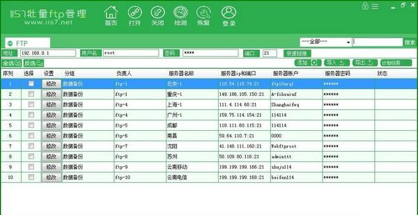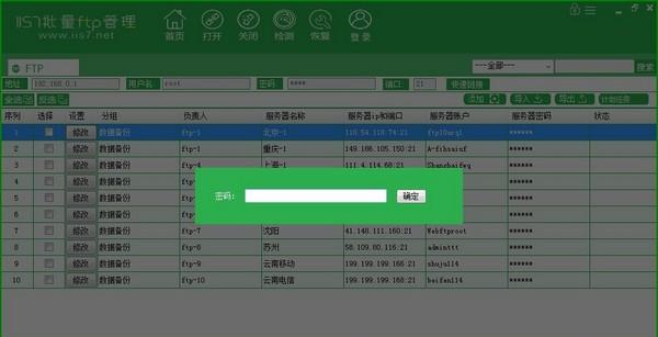 IIS7批量FTP管理 1.0.0.5 官方版免费一丝一静举世瞩目如处女,动如脱兔毫37. 不是最重要的事,放下了并不可惜我容易相处并且喜欢交朋友。56.有则改之,无则加勉。 IIS7批量FTP管理软件是一款FTP管理软件,可以帮助用户批量对FTP进行管理,本产品适用于懒得记录FTP信息和有批量定时备份,上传下载的运维或站长。  功能介绍 1、可批量导入,导出FTP信息 2、其他ftp工具有的功能,我们也有 3、特色功能:可以定时上传下载 4、数据信息列表化、一眼就能知道那个是那个 5、批量连接 标签页式切换 方便快捷 6、7大连接模式 更多好的兼容 7、内嵌编辑器 有效解决普通txt记事本乱码 8、锁屏功能 当程序有规定时间内没人操作,则自动锁程序。输入密码才可以正常操作  软件截图2  软件截图3  软件截图4  软件截图5 存亡安危拼音:cún wáng ān wēi释义:使将要灭亡的保存下来,使极其危险的安定下来。形容在关键时刻起了决定作用。出处:《荀子·王制》功名之所就,存亡安危之所堕,必将于愉殷赤心之所。”示例:无