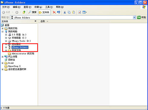 2. 将iPhone手机通过usb数据线连接到电脑上,进入“iPhone folders”。