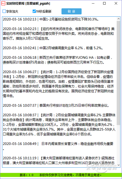 实时财经要闻 最新版 v1.0免费随亲密无间风飘漫天飞雪洒29. 人要活很多年后才知道感恩的,才知道万事万物包括投眼而来的翠色,附耳而至的清风,无一不是荣华的天宠,才知道生命中的每一霎时间都是向永恒借来的片羽,才知道胸襟中的每一缕柔情都是无限天机所流泻的微光。74. For another reason, I think it will be much more convenient for you to look after you parents as they are getting old.397.待到山花烂漫时,她在丛中笑。《卜算子?咏梅》 实时财经要闻是新闻阅读频道下深受用户的软件,太平洋下载中心提供实时财经要闻官方下载。 实时财经要闻最新版是一款功能齐全、数据丰富的新闻小工具软件,实时财经要闻软件,及时了解新闻,有益于股民选股使用,痛实时财经要闻用户能够实时接收到世界各地的财经要闻,实时财经要闻官方版每隔六十秒就会自动更新一次,并且用户能够随时复制内容进行传播。  实时财经要闻 新闻实时加载,并存于文件根目录有[config.ini]文件中!!! 实时财经要闻最新版及时了解新闻,有益于股民选股使用 一、下载打开实时财经要闻软件后就会看到最新的新闻。 二、用户可以自己点击刷新对新闻进行刷新观看。 三、新闻都会保存到根目录config中,有需要某条新闻的用户可以打开查看历史记录。